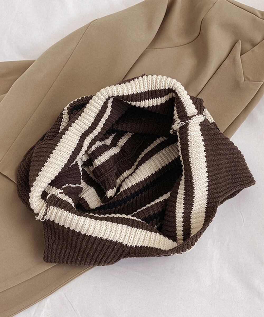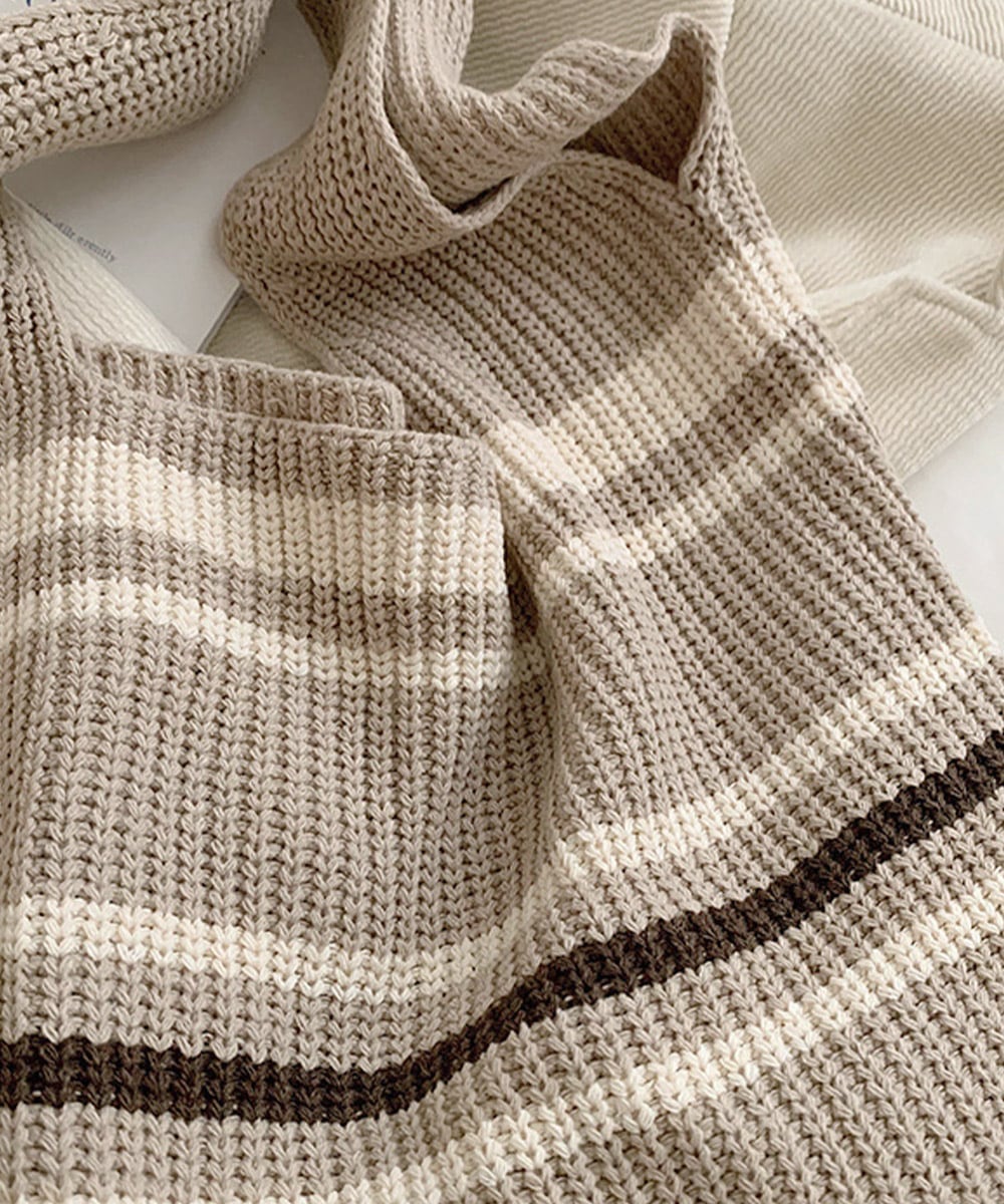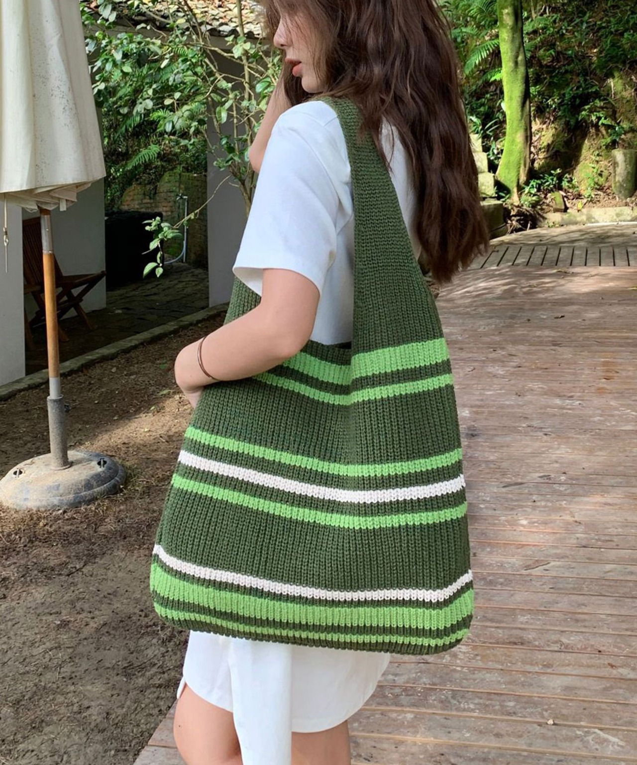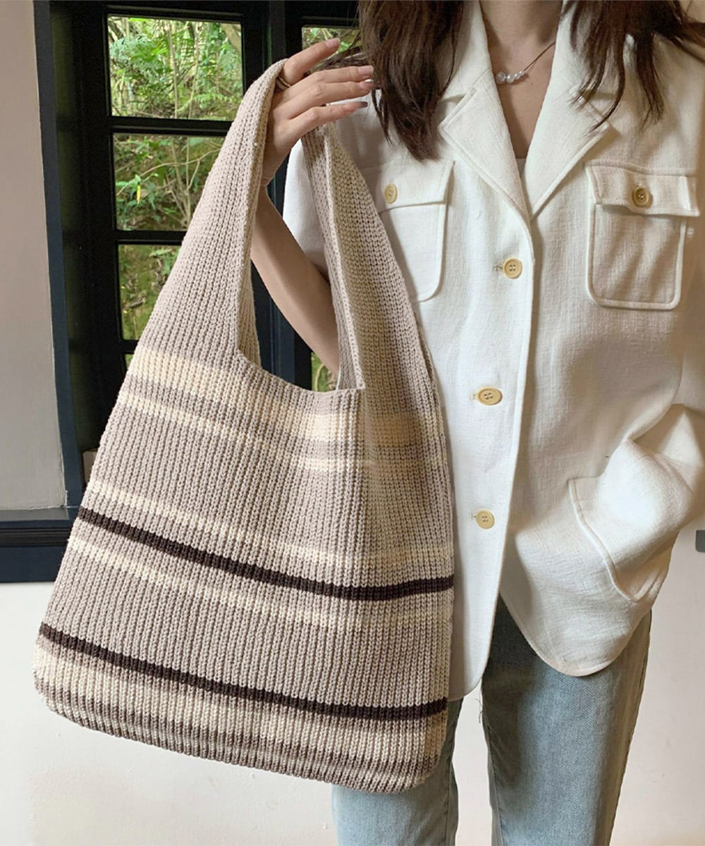 ボーダー柄がアクセントになり、コーデにこなれ感をプラスするニットトートバッグです。