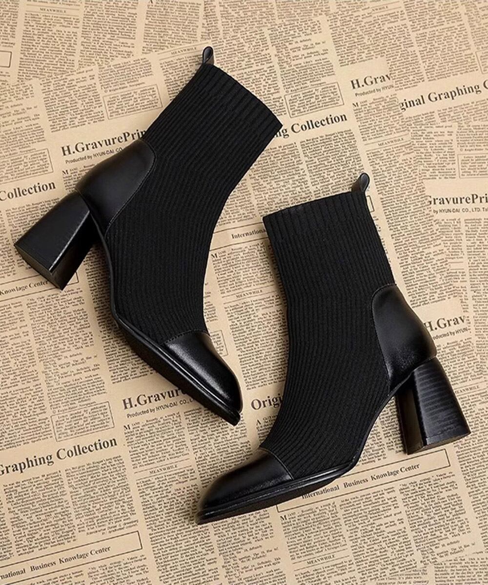 【日本倉庫からの発送】 ソックス風ブーツ レディース 太ヒール #[99GYXC-081_32700]【送料込み】【251003】