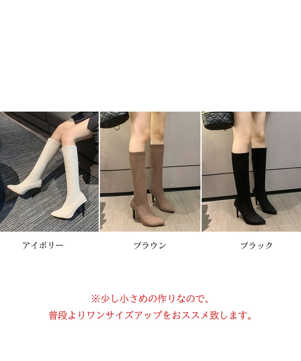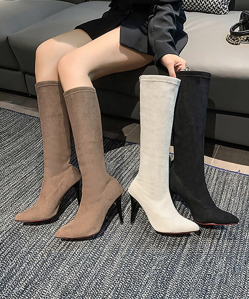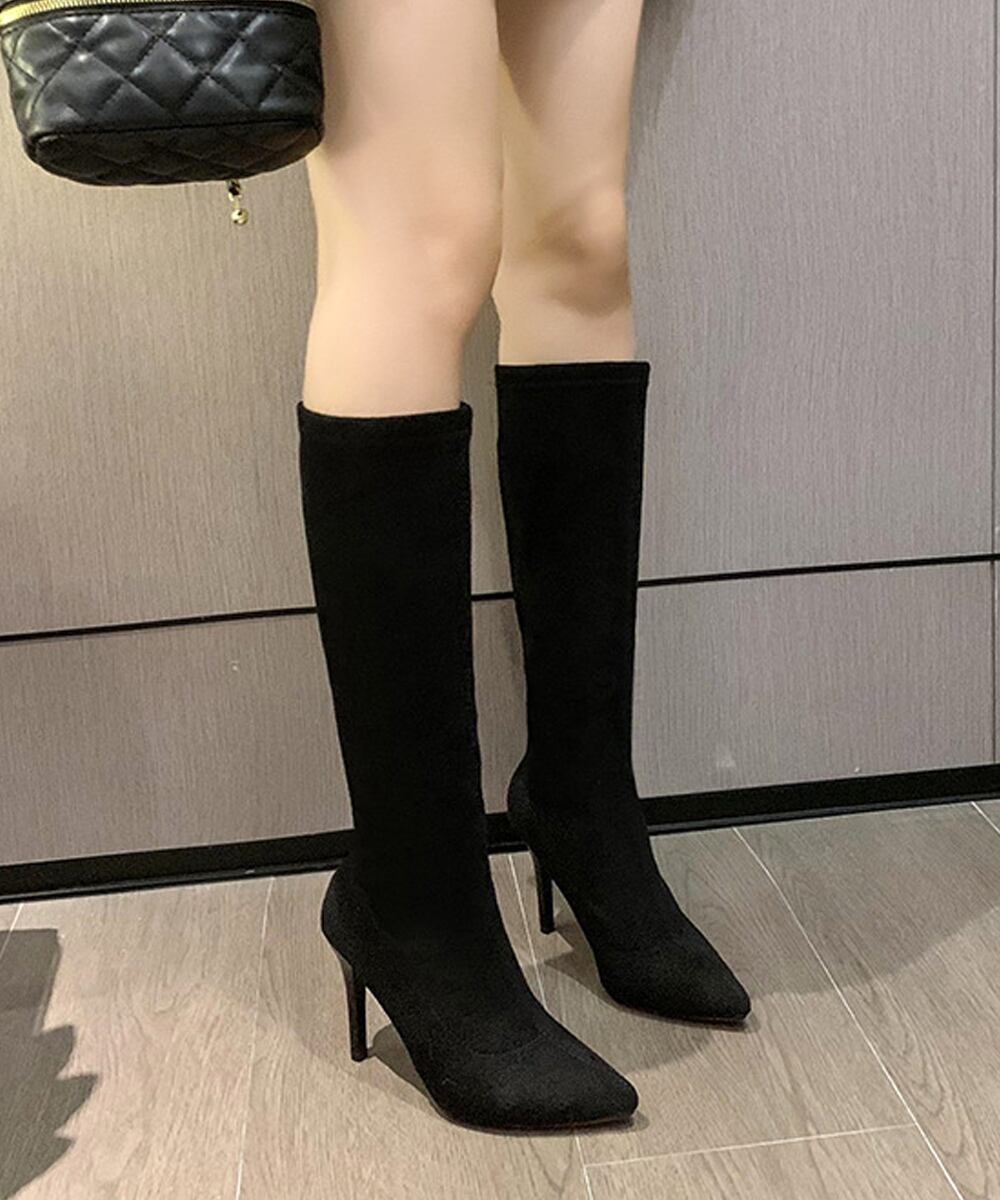 9cmハイヒール 美脚ブーツ 脚長 膝下 スエード調 大人 オルチャン きれいめ シンプル 秋冬 人気 韓国