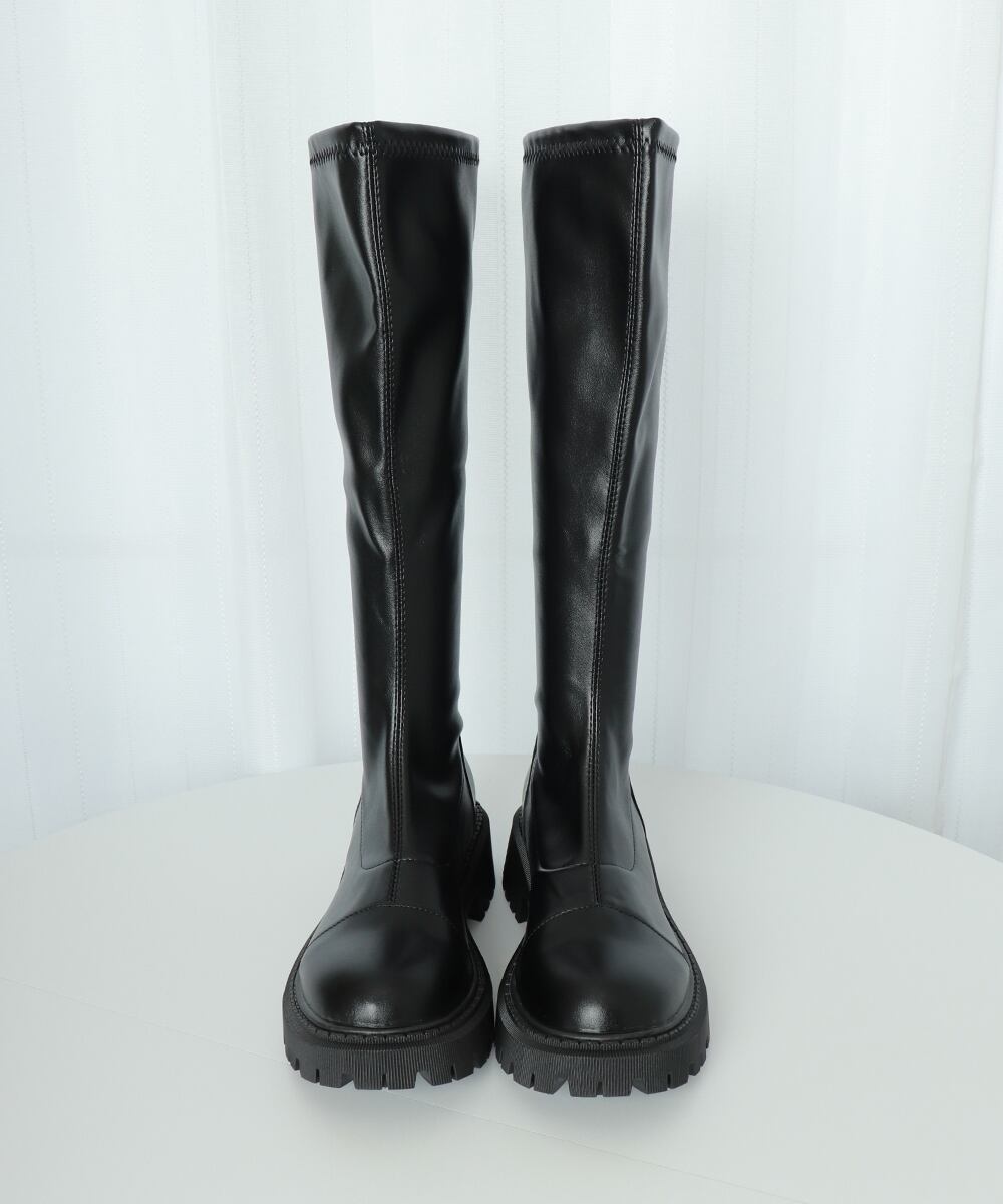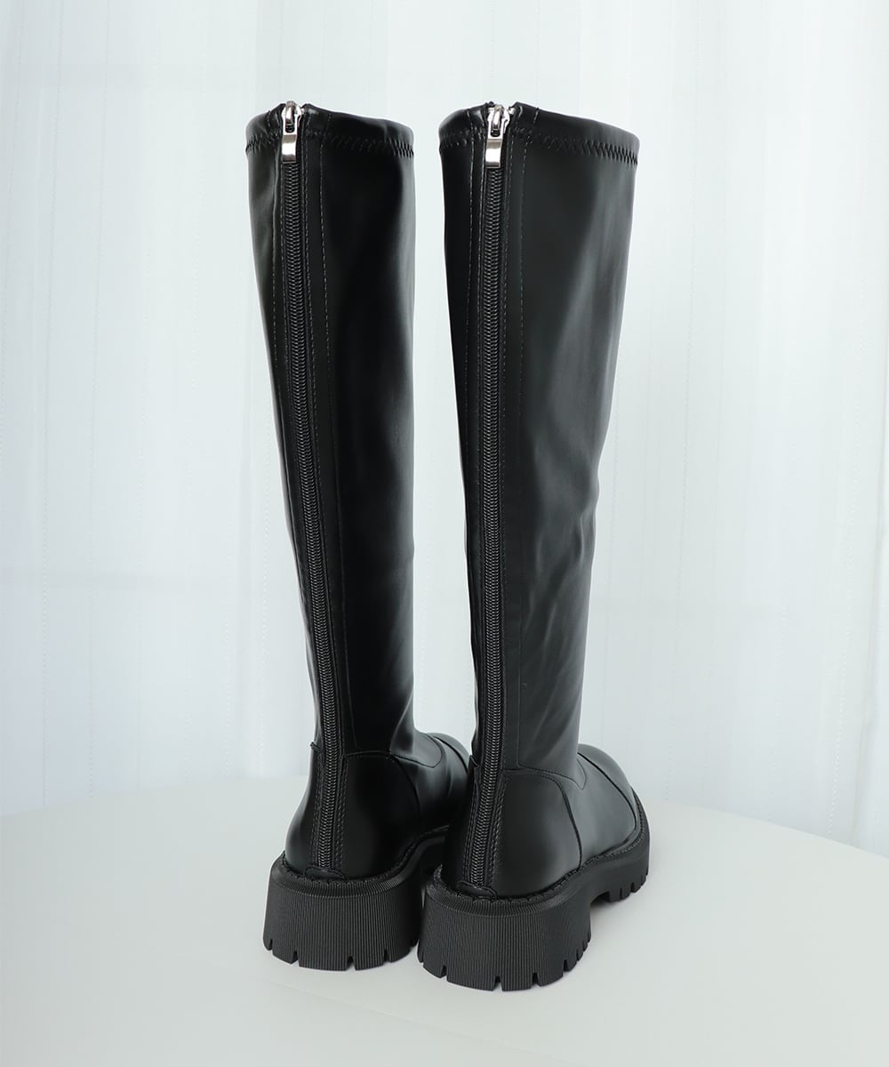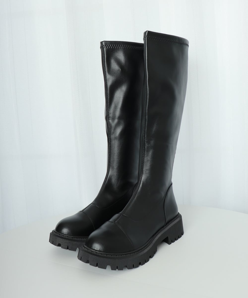 ブラックとブラウン、ベーシックなカラー展開の厚底ロング丈ブーツです。