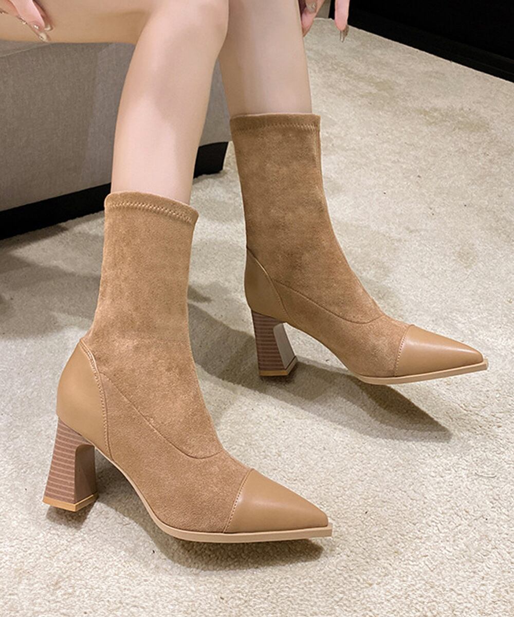 通勤OL ブーツ チャンキーヒール靴 韓国おしゃれくつ
