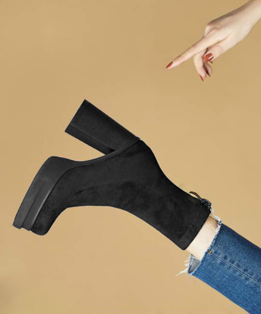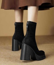 韓国 厚底ショートブーツ レディース 疲れないハイヒールスエードブーツ きれいめ 歩きやすい靴 アンクルブーツ履きやすい