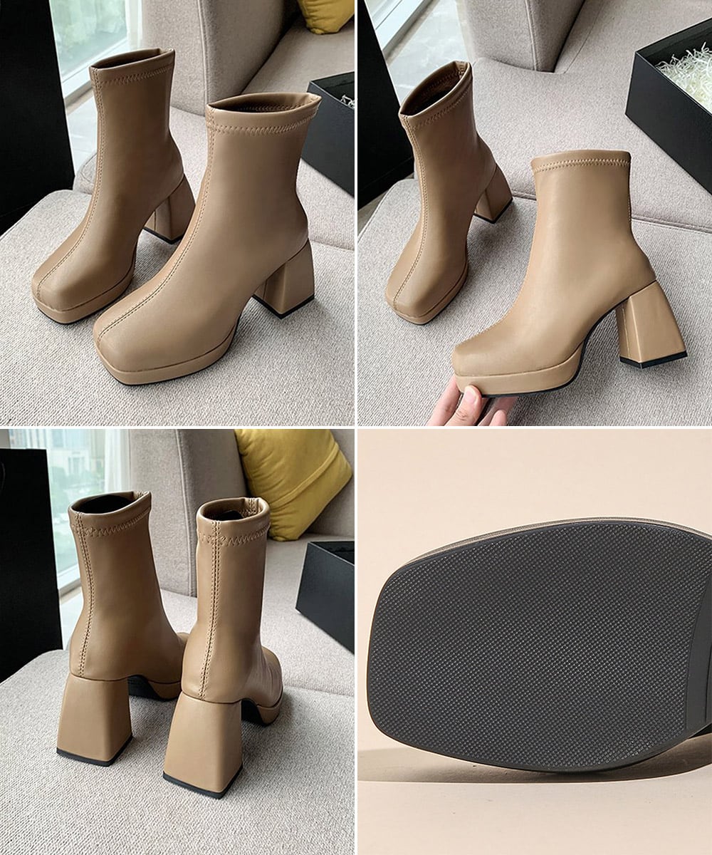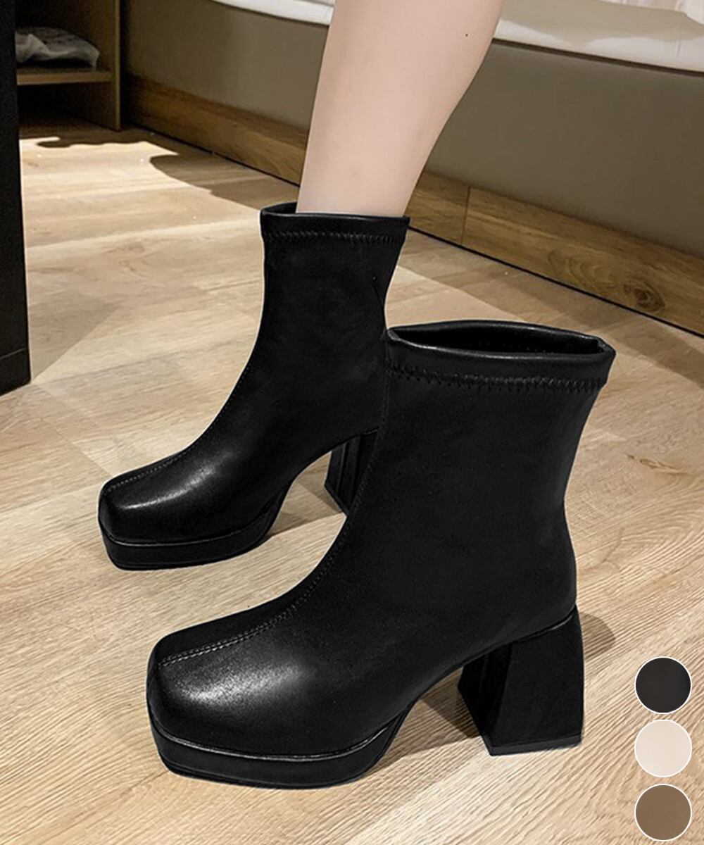 安定感のある太ヒールで歩きやすい厚底ショートブーツ