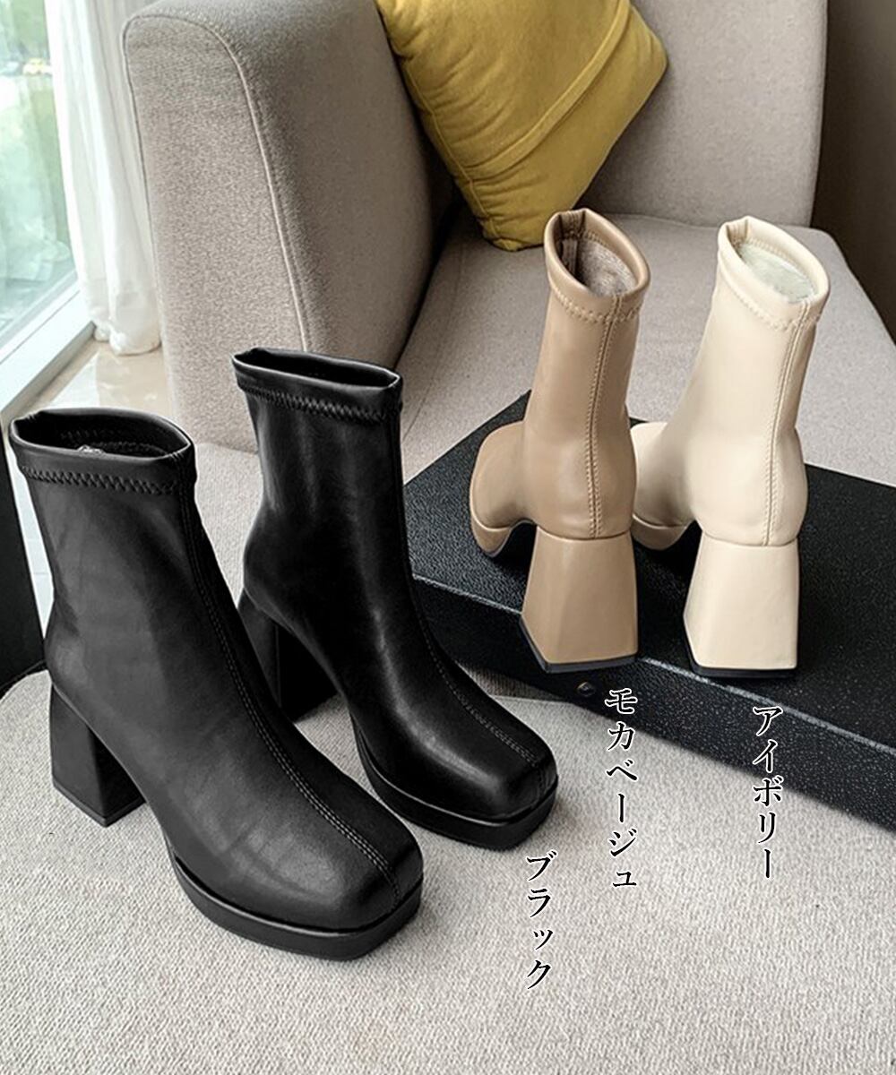 厚底ブーツ ハイヒール アンクルブーツ 歩きやすい スリム 韓国風 内ボア 太ヒールブーティ 秋冬美脚シューズ きれいめ