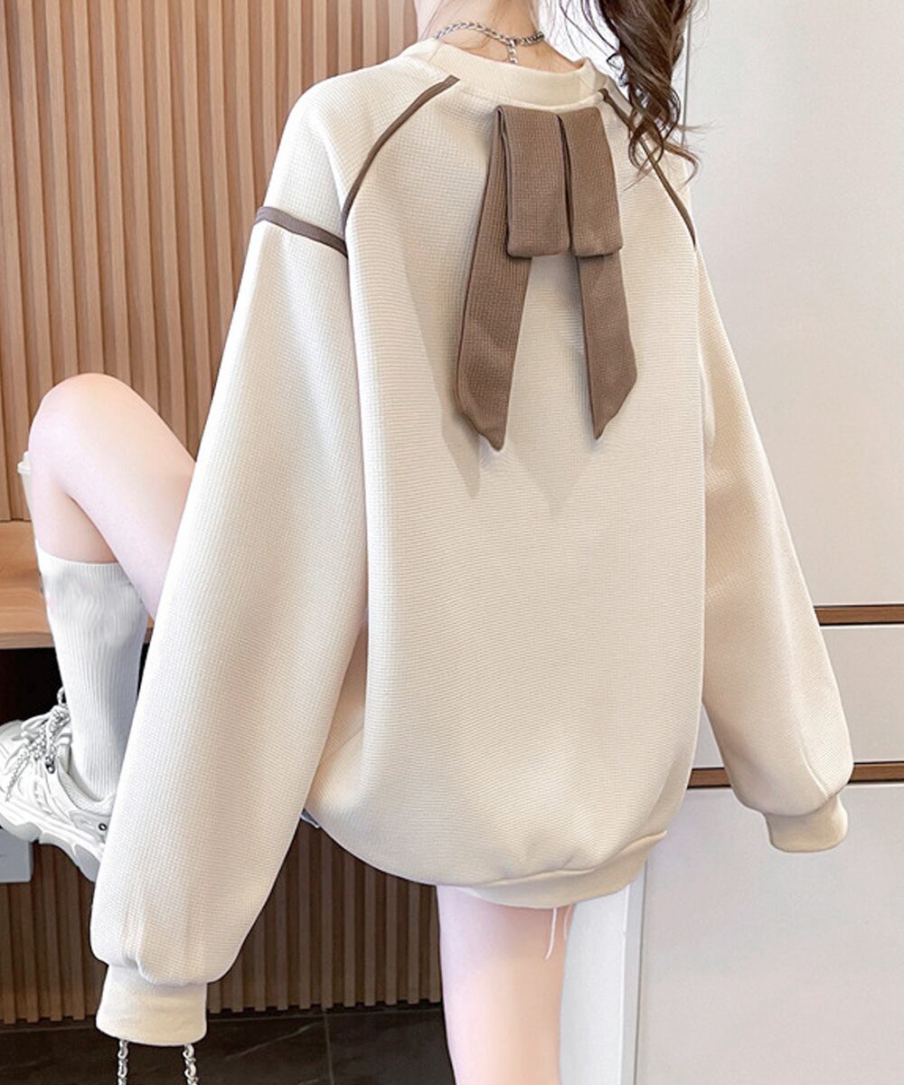 ゆったりトップス ラウンドネック プルオーバー 体型カバー 暖かい 長袖 大人可愛い 韓国ファッション お洒落 通学