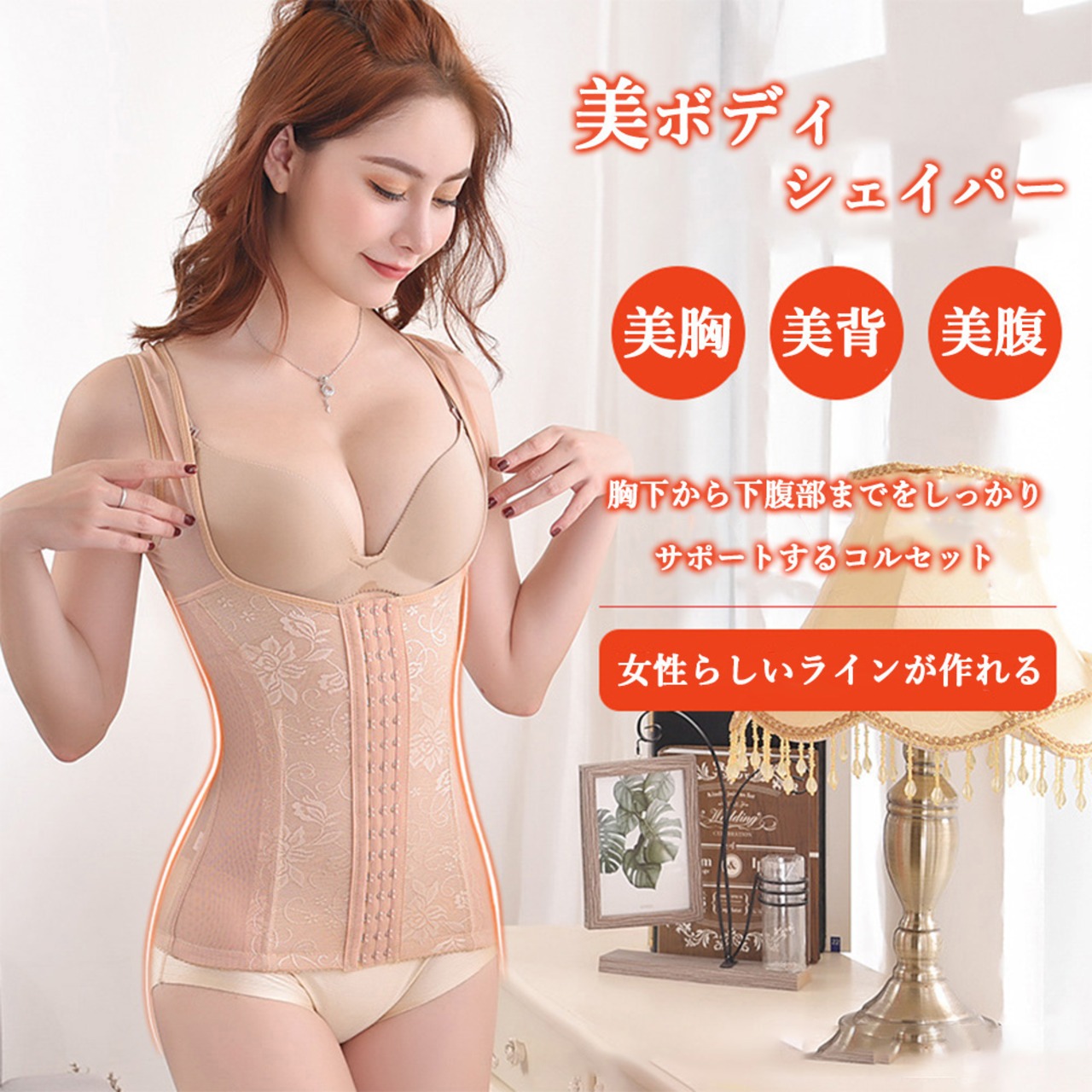 胸下から下腹部までをしっかりサポートするコルセット