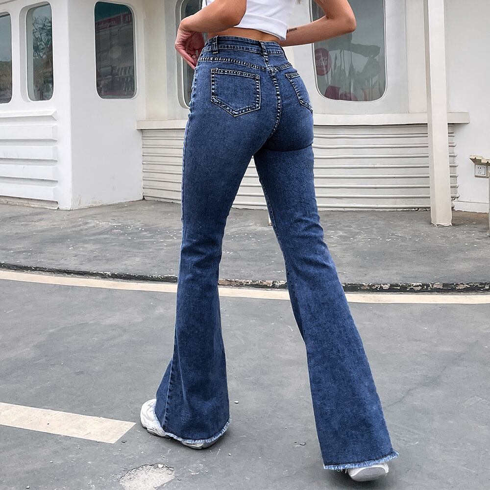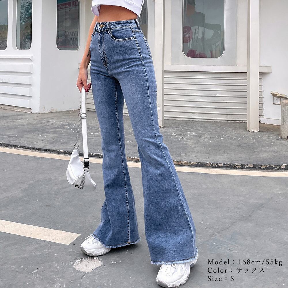 【日本倉庫からの発送】 デニム フレアパンツ 裾フリンジ 美脚 #[6YXNH-001_32000]【送料込み】【251003】