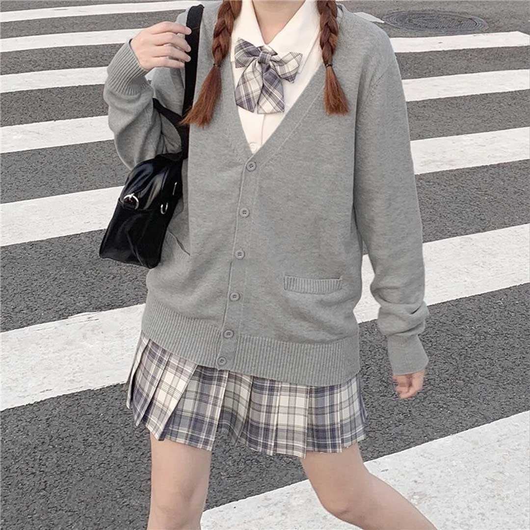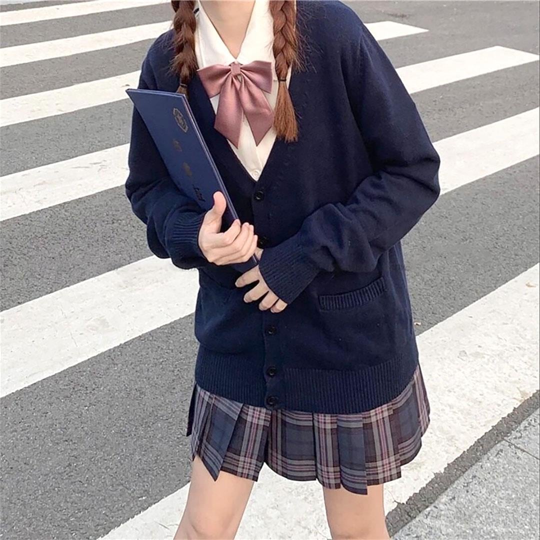 *春秋の制服に欠かせないニットカーディガンは爽やかに着られるスクールアイテム