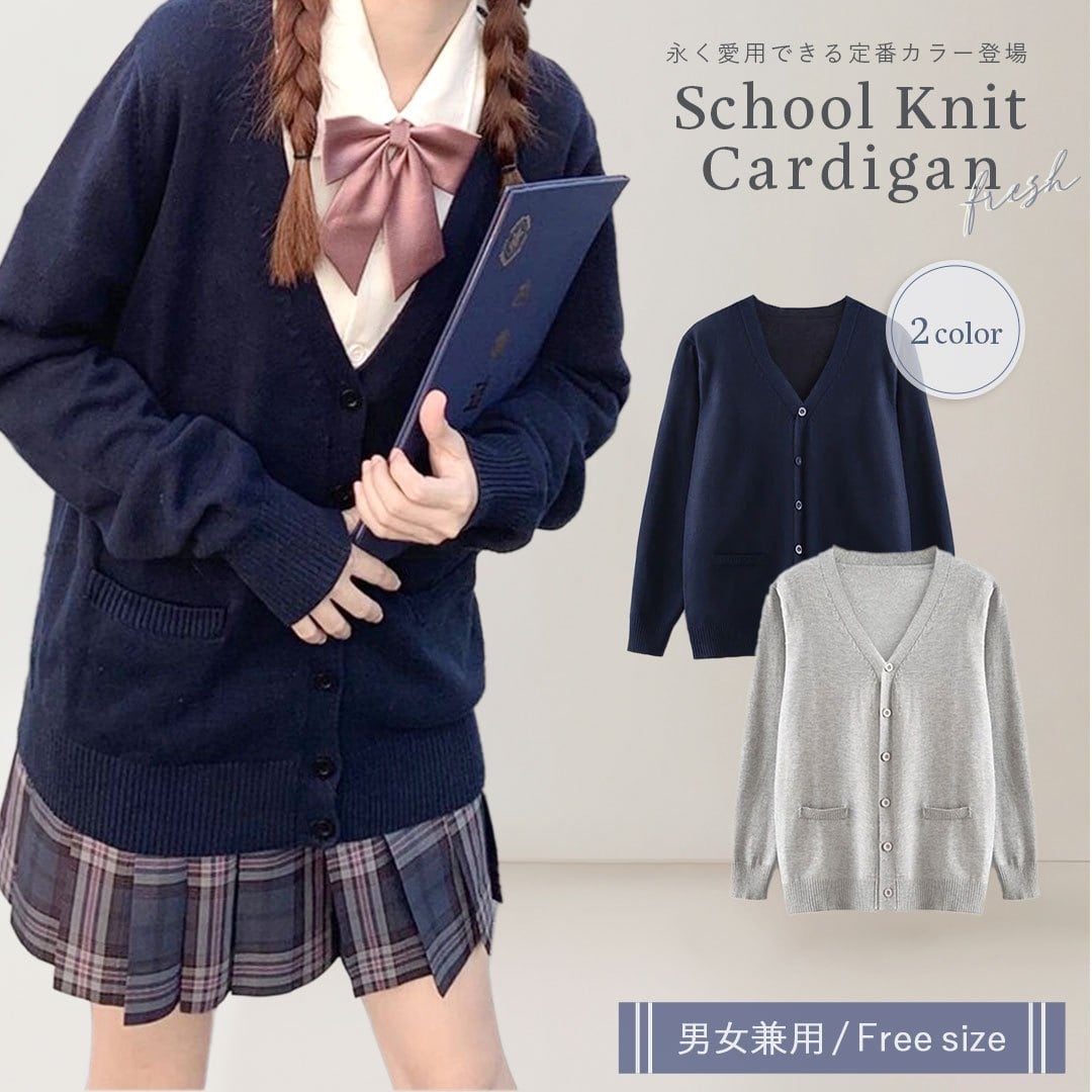 スクールニット カーディガン ーVer2ー グレーorネイビー 男女兼用 セーター 制服 学生服 高校 中学 通学