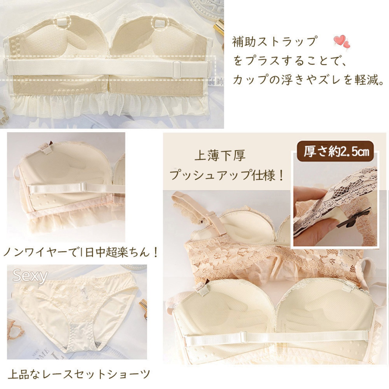 2点セットかわいい 3/4カップブラ 脇スッキリインナー