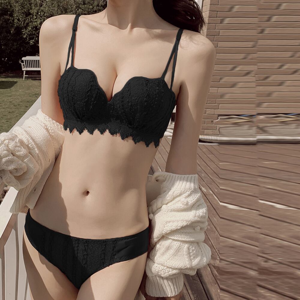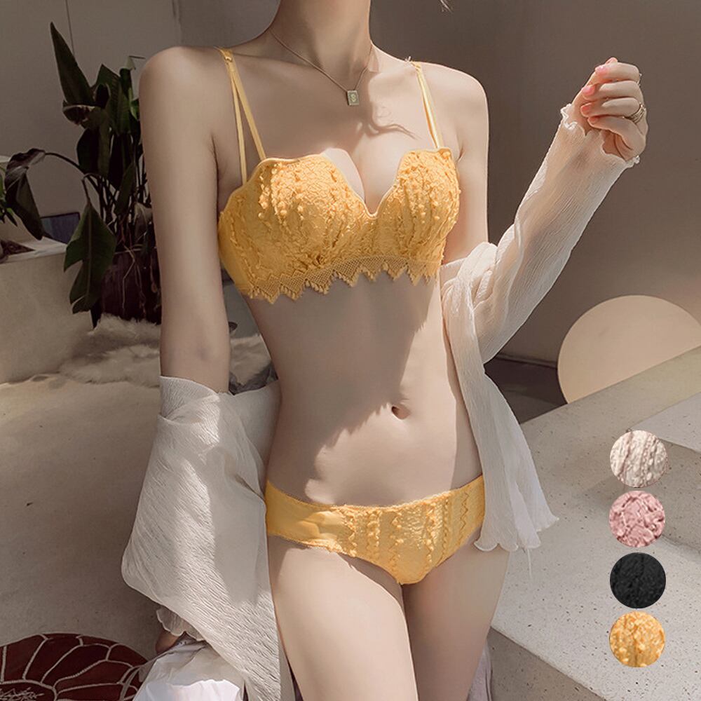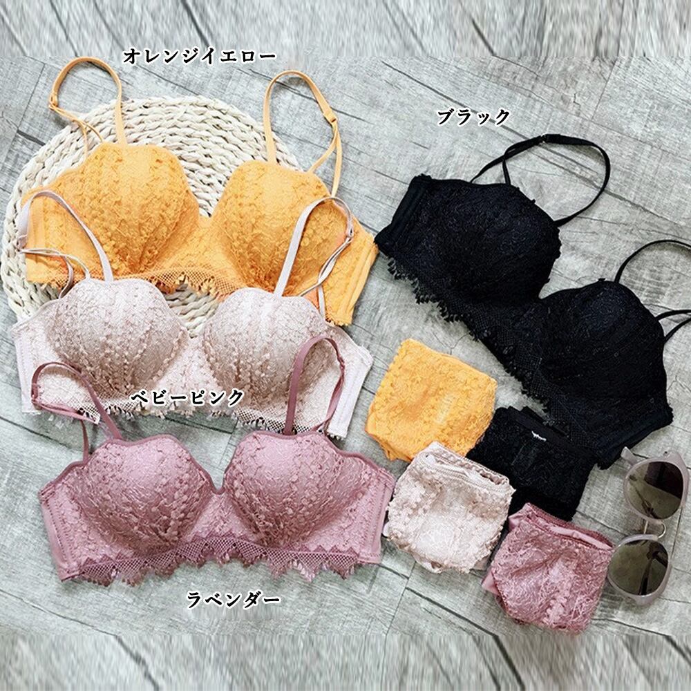 可愛い レース刺しゅう ブラジャー ショーツ 上下セット 小胸盛れる美胸 韓国 おしゃれ 谷間ブラ 脇スッキリ下着セット
