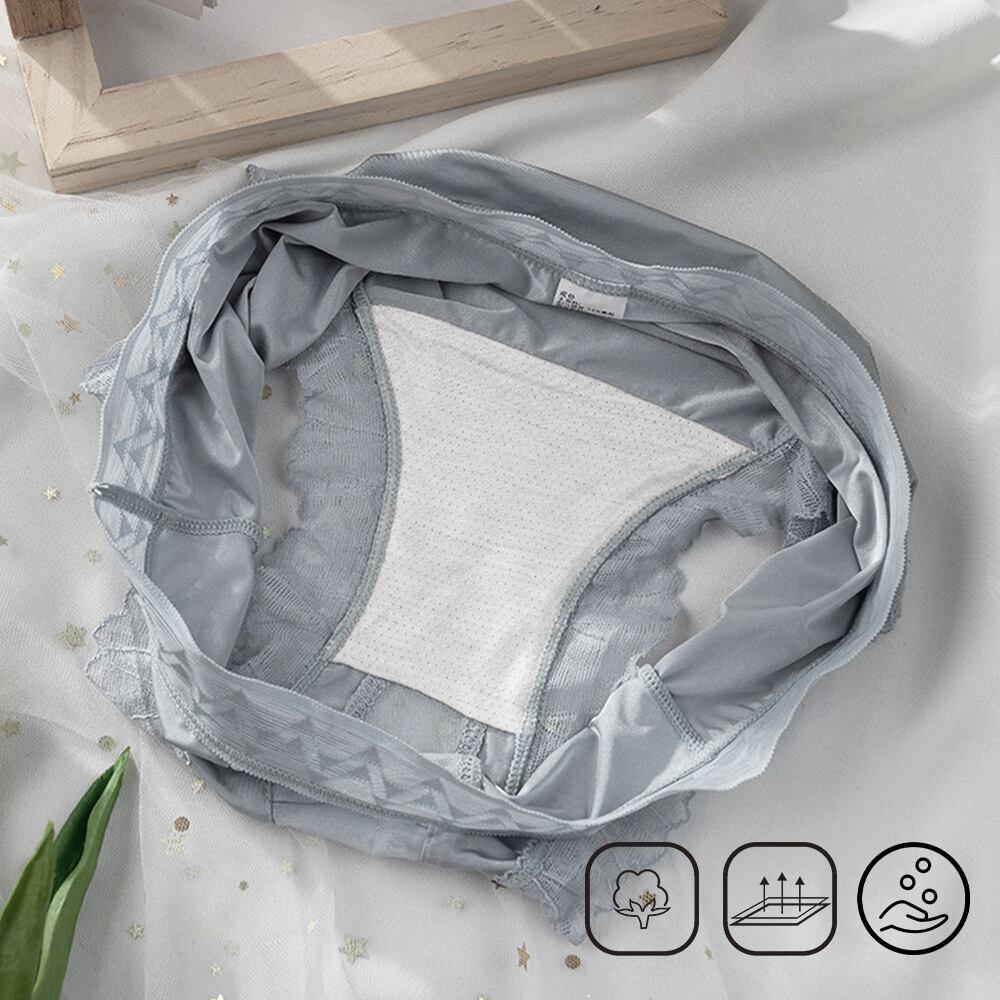 ウエストと脚口にあしらわれたレースは体に程よくフィット、敏感肌でも痒くなりにくく締め付け感もなくて快適