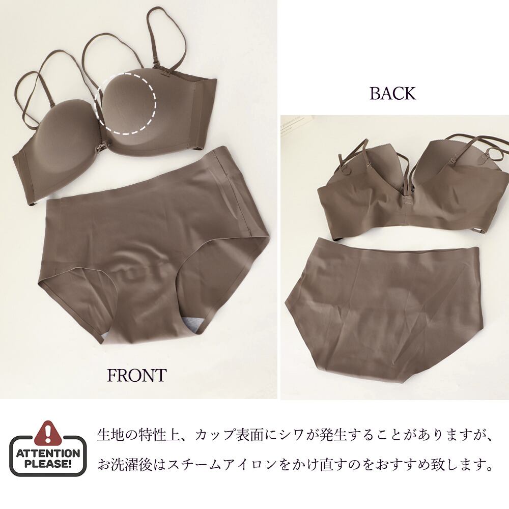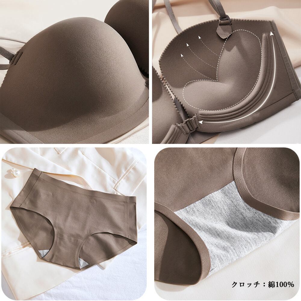 フロントホック ノンワイヤー 美胸ブラジャー シームレスショーツ 上下セット 背中魅せ らくちんブラジャー 美尻ショーツ