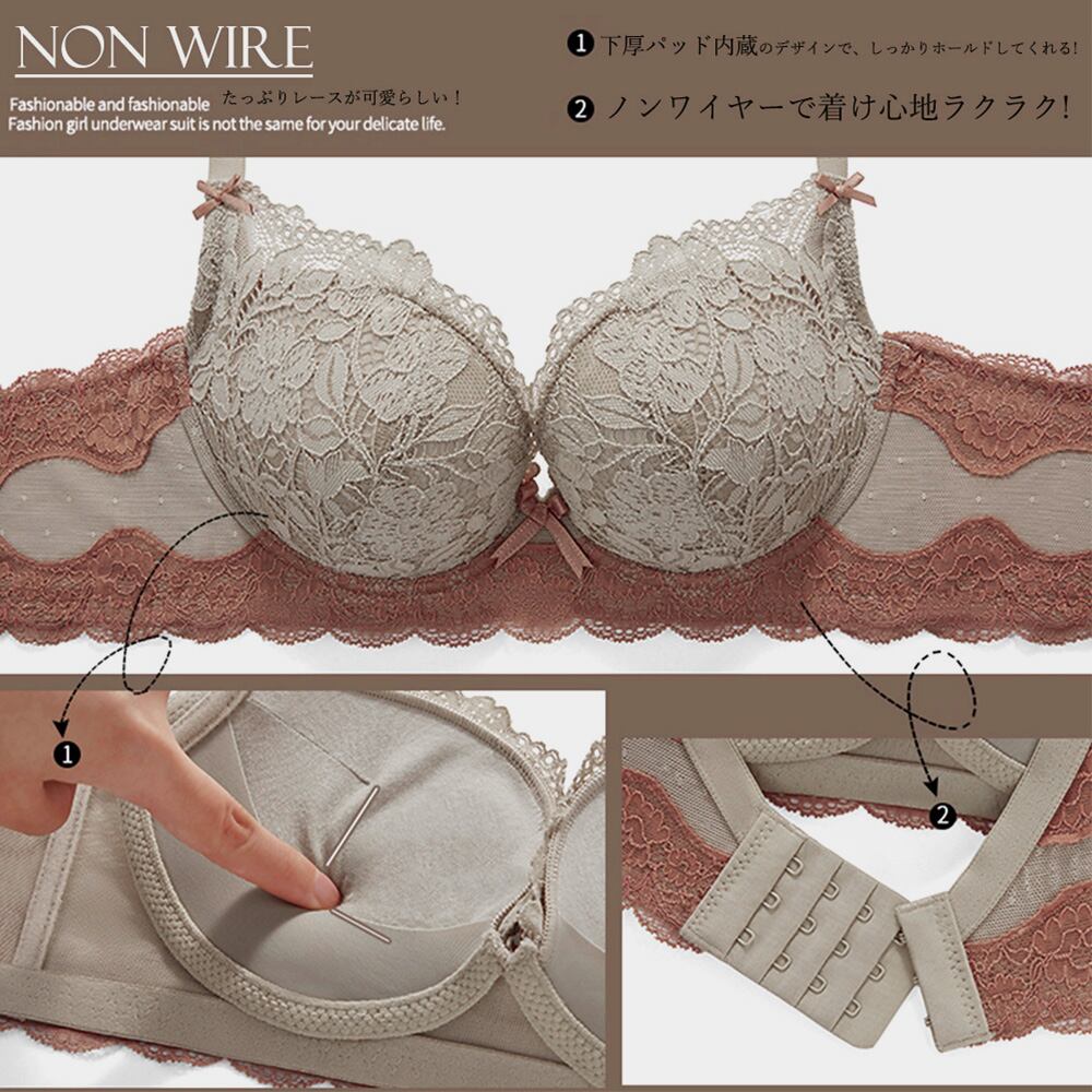 バイカラーレース ブラショーツセット バストアップ 上下セット 透け 美胸 リボン付き 下着 刺しゅう 盛れるセットアップ 韓国ファッション 花柄ノンワイヤー