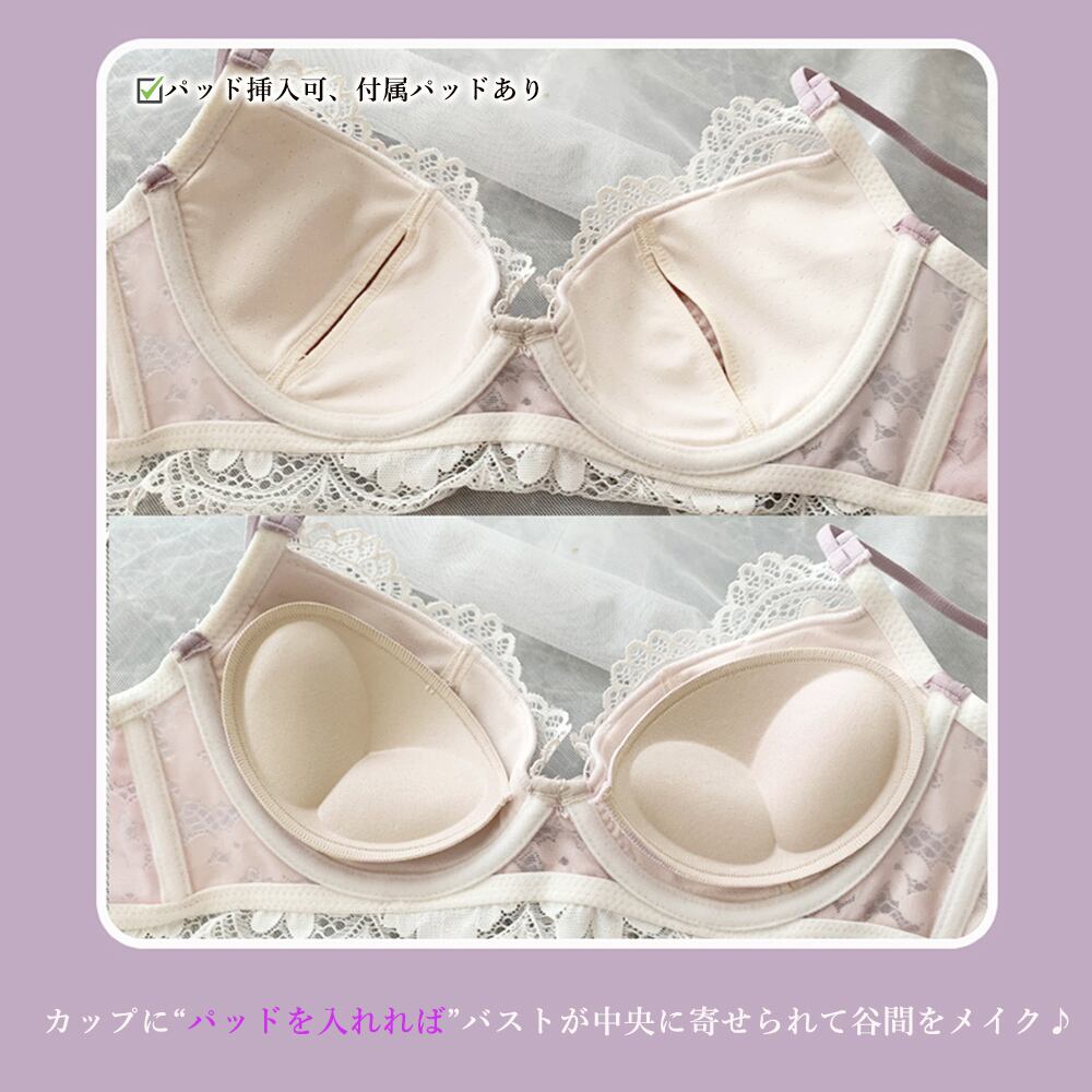 パット付き レースブラショーツセット セクシー 谷間盛れる 勝負下着 女性プレゼント 2点セット 大人可愛い リボンブラ