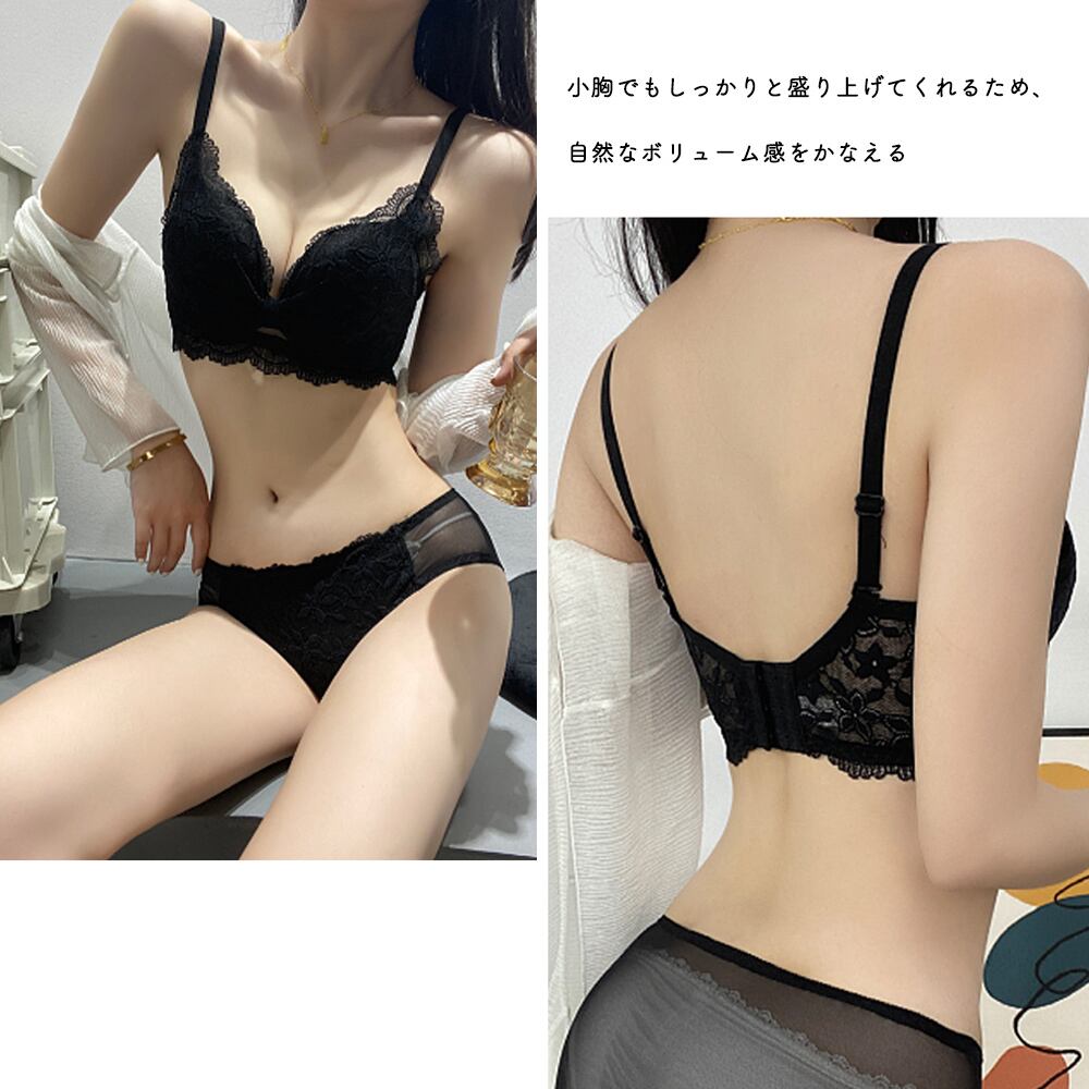 セクシーランジェリーセット ノンワイヤー ブラセット 小胸盛れる 韓国 可愛い レースワイヤレスブラ 美胸 脇スッキリ