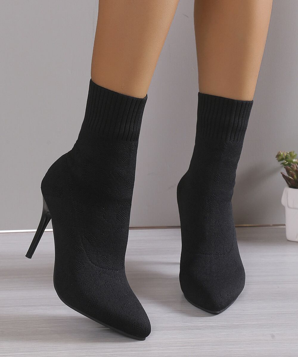 レディース ニットブーツ ポインテッドトゥ 9cmピンヒール シューズ 無地シンプル セクシー オフィス きれいめ 靴