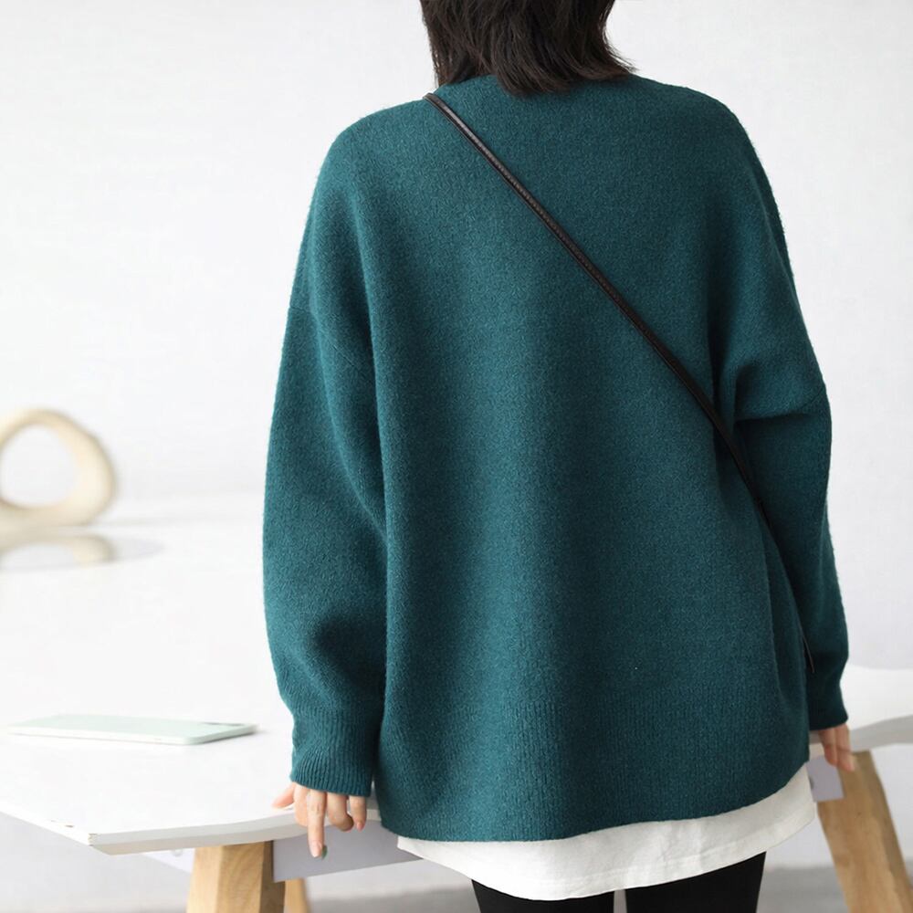 オーバーサイズ 中厚手 ニットトップス 長袖 あたたか 無地 シンプルニットウエア 韓国 ニットプルオーバー 着やせ上品