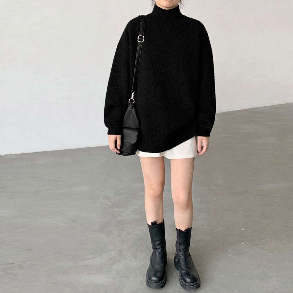 オフィスカジュアル ゆったり体型カバー モックネックニット