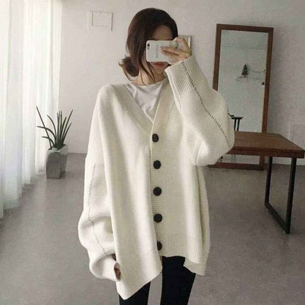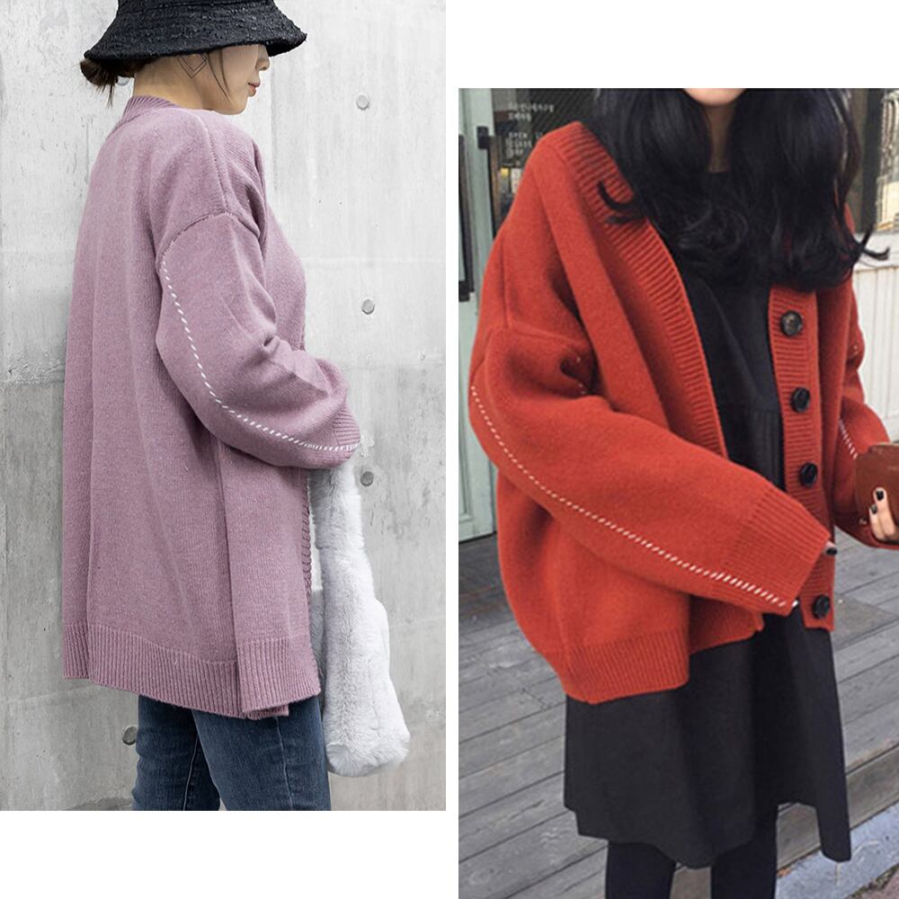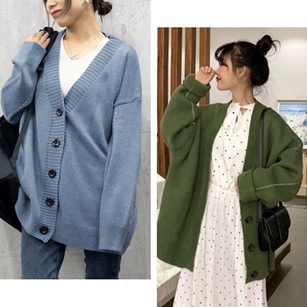 ゆったり 韓国風 トップス 羽織り vネックカーデ 体型カバー 長袖 中厚手 ドロップショルダー カーディガン 春秋冬