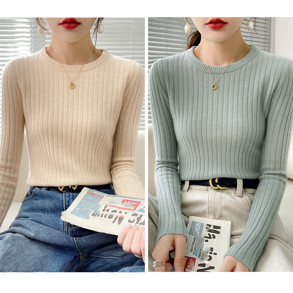 クルーネック ニットカットソー ベーシック 薄手ニット 着回し ニットプルオーバー 柔らかい ニットインナー 無地全9色