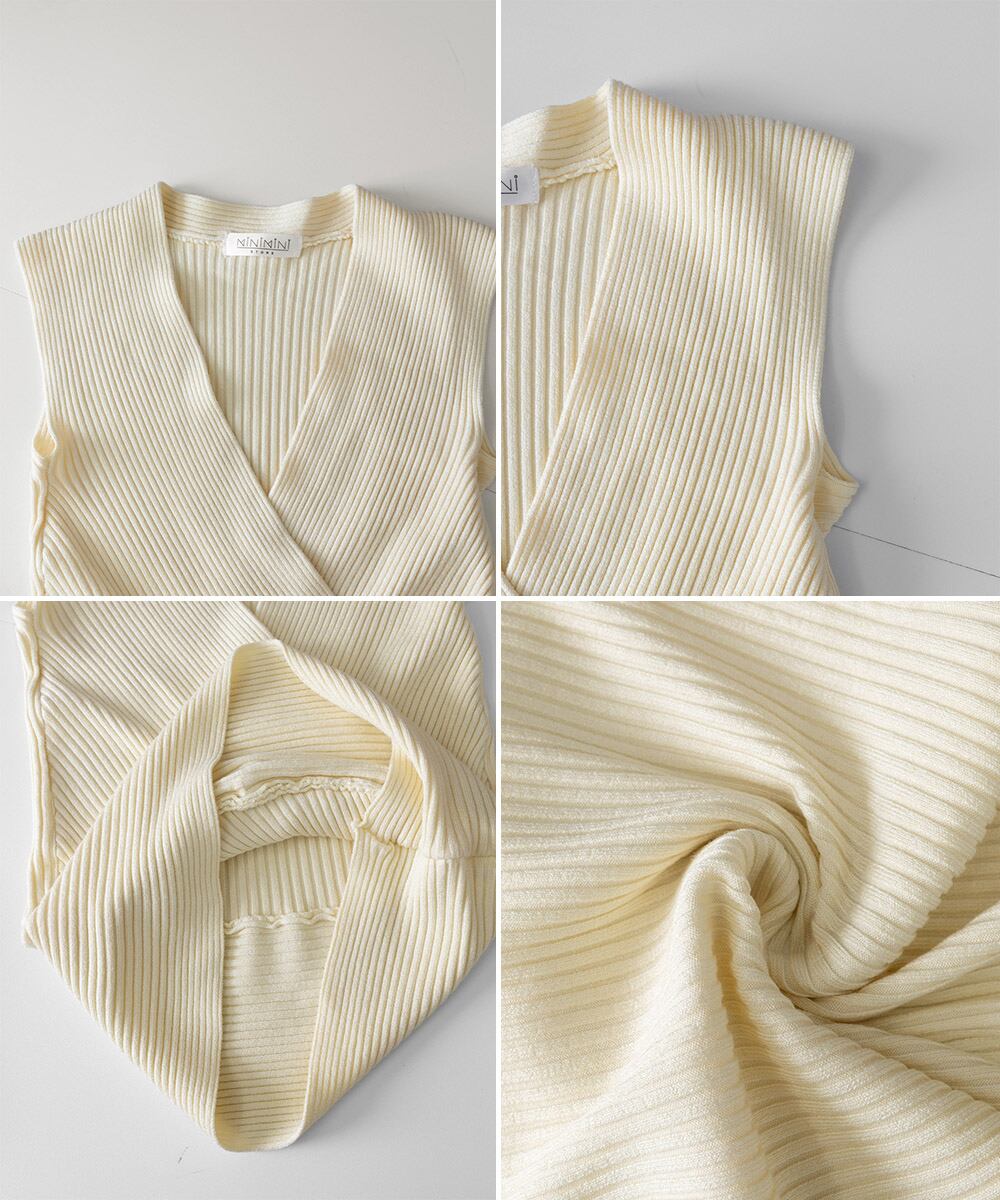 【日本倉庫からの発送】 Vネックリブニットトップス サマーニット #[3ODN-015_15600]【送料込み】【250808】