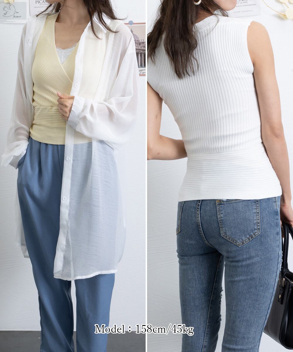 タンクトップ 韓国 リブニットインナー セクシーニットソー