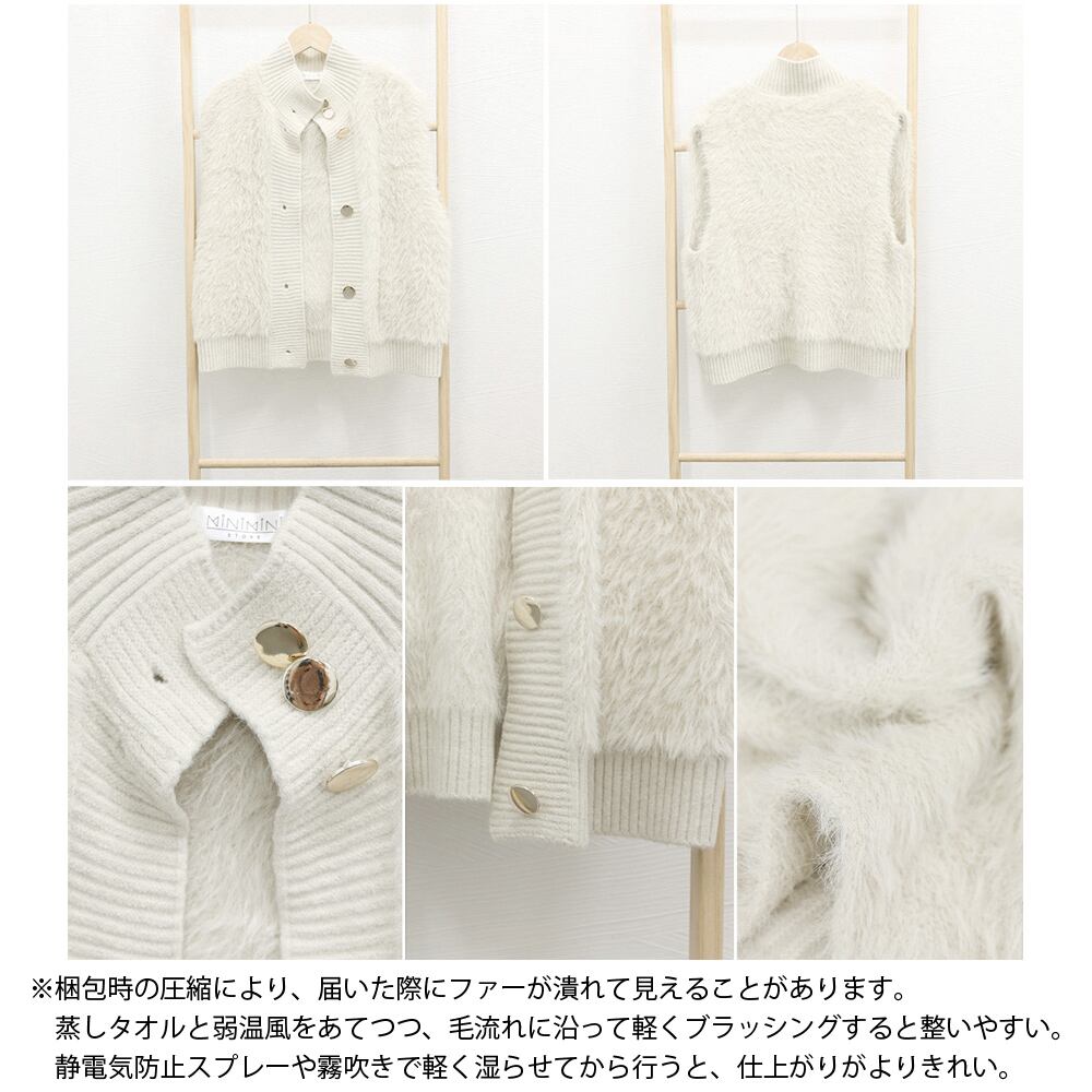 韓国 ファージレ きれいめ スタンドカラーファージャケット 袖なしファーカーディガン 秋冬 ニットアウター 羽織り着やせ
