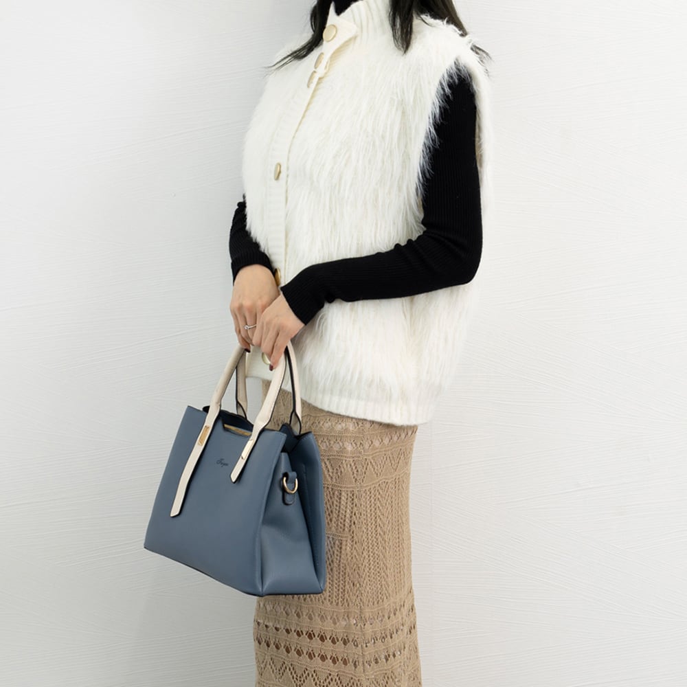 シーズンムード高まるふわふわな肌触り、ずっと触っていたくなるフェイクファー素材とちくちくしない上質ニット素材で仕上げた異素材mixジレ