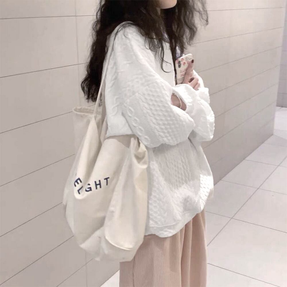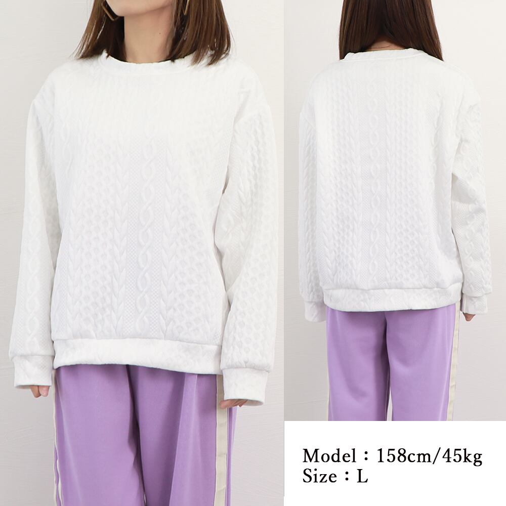 無地 プルオーバー 長袖トップス 春秋 エンボス加工 白