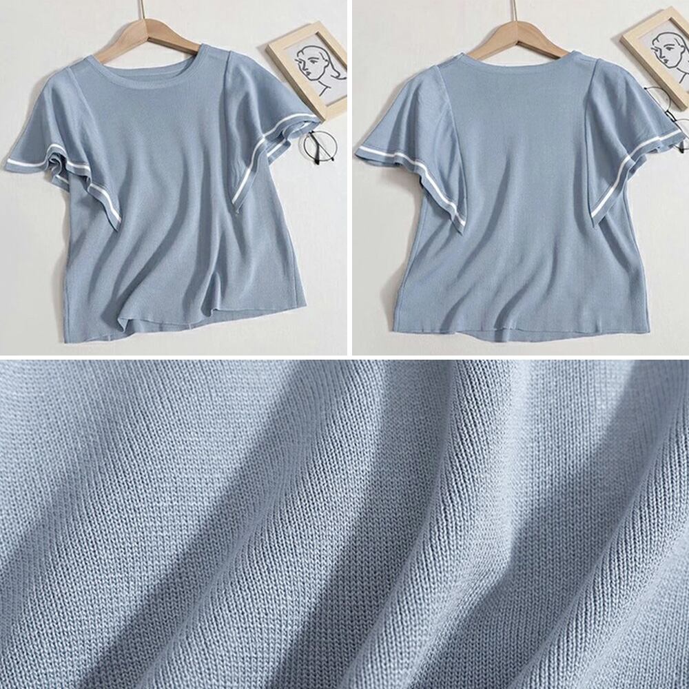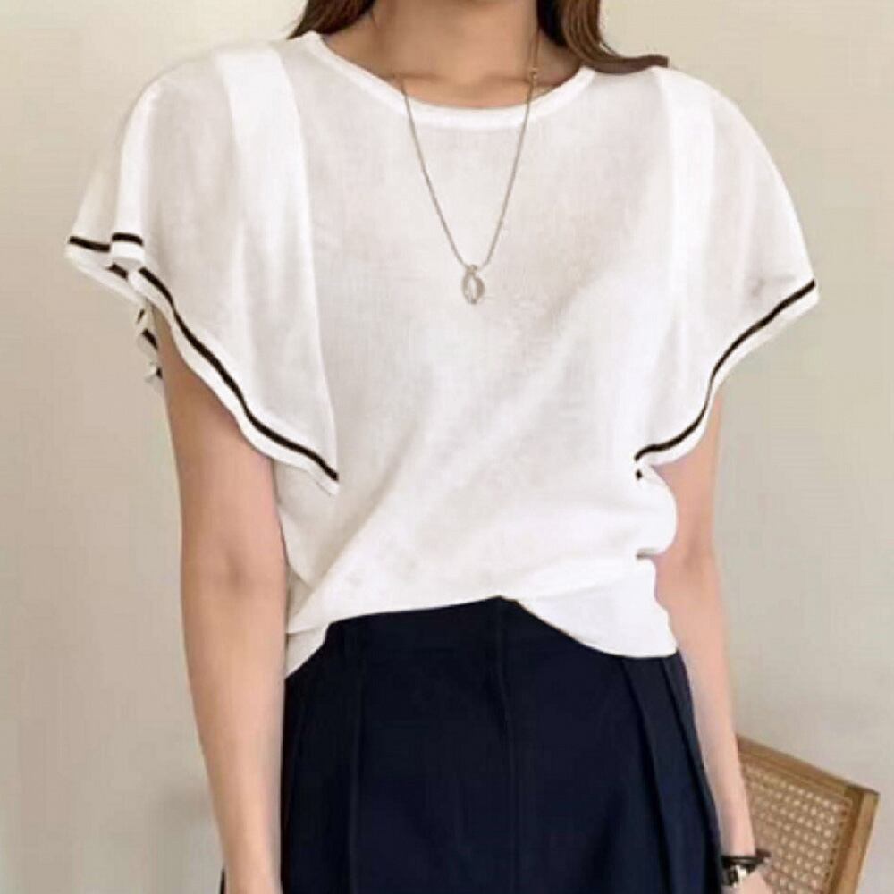 【日本倉庫からの発送】 ラッフルスリーブ サマーニット 韓国夏服 #[6XINANYT-027_21100]【送料込み】【250712】