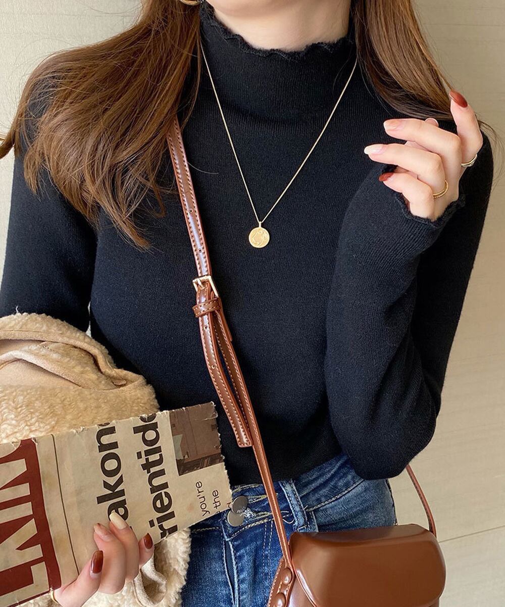 オフィスカジュアル 大人ニットインナー フリルネックニット