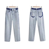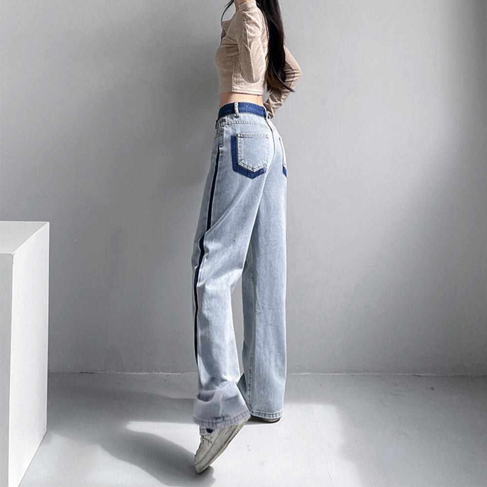 【日本倉庫からの発送】 配色ストレートデニムパンツ ハイウエスト #[86YIFANGE-010_29100]【送料込み】【250829】