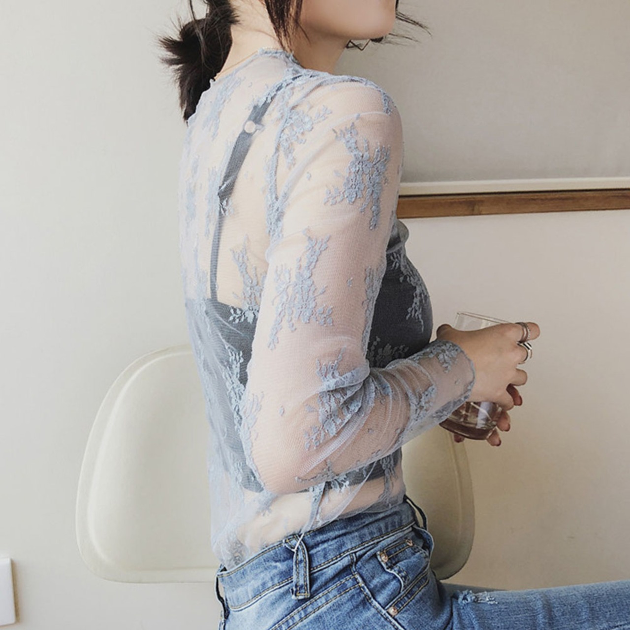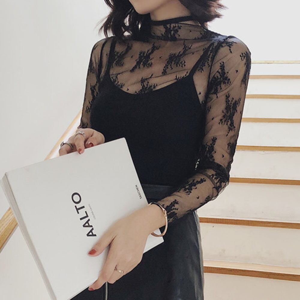 レース チュール トップス レディース ハイネック レースインナー シースルー 長袖 トップス