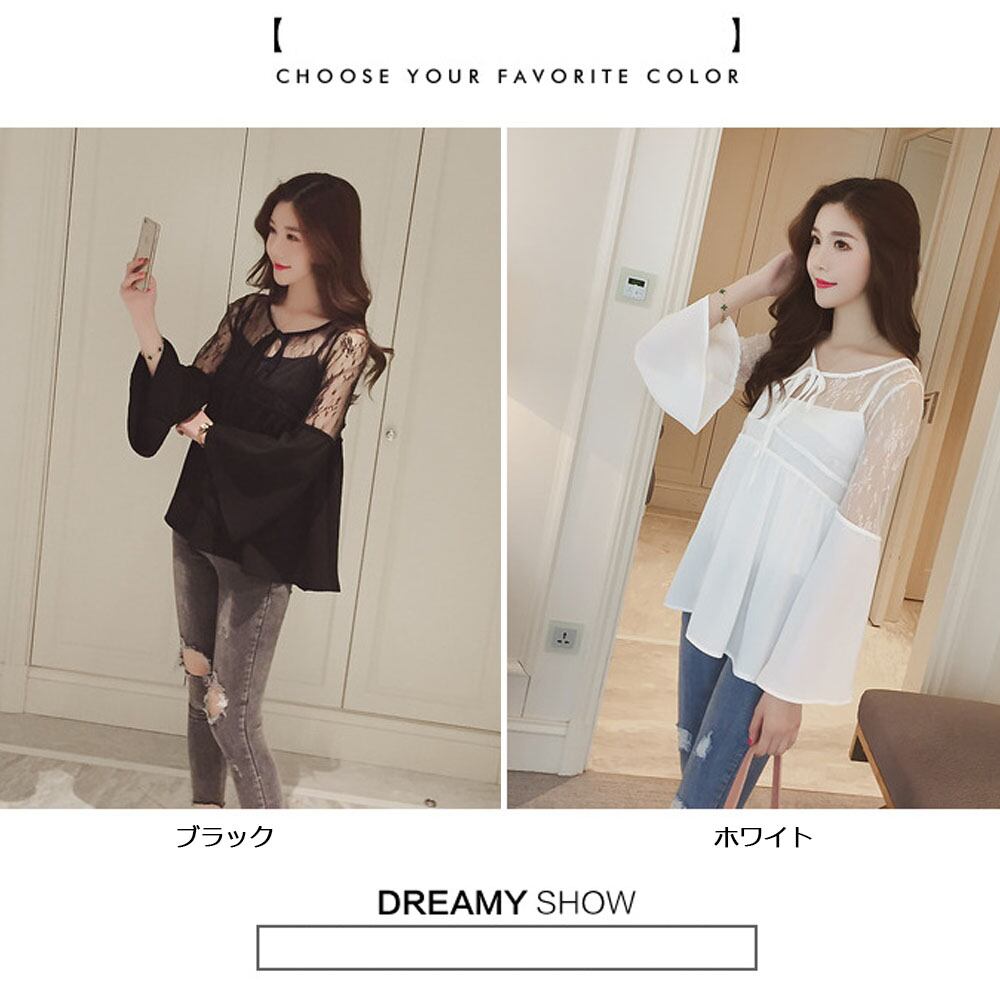 胸元から切り替えデザインのシースルートップスとキャミソールの2点セット