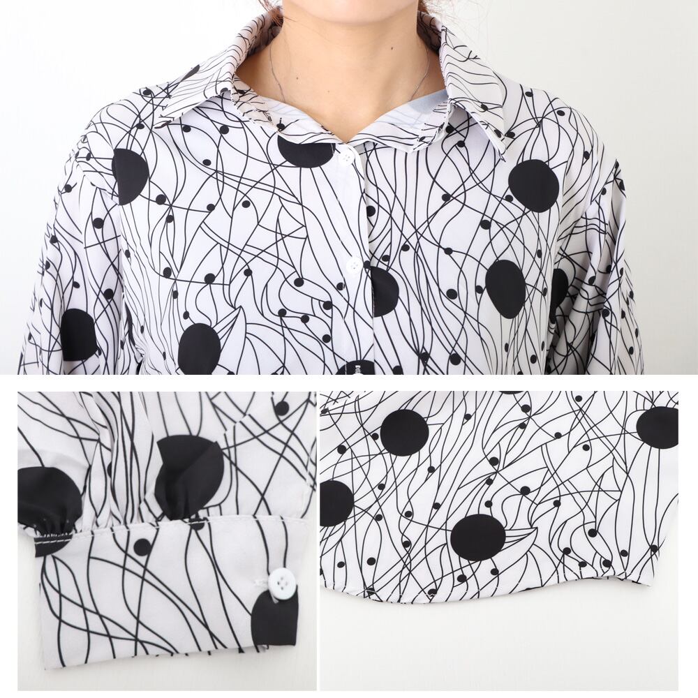 体型カバートップス プリント ブラウス 薄手 カジュアル