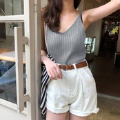 【日本倉庫からの発送】 vネック リブニット キャミソール 夏 #[86BINGXIU-001_8800]【送料込み】【250712】