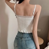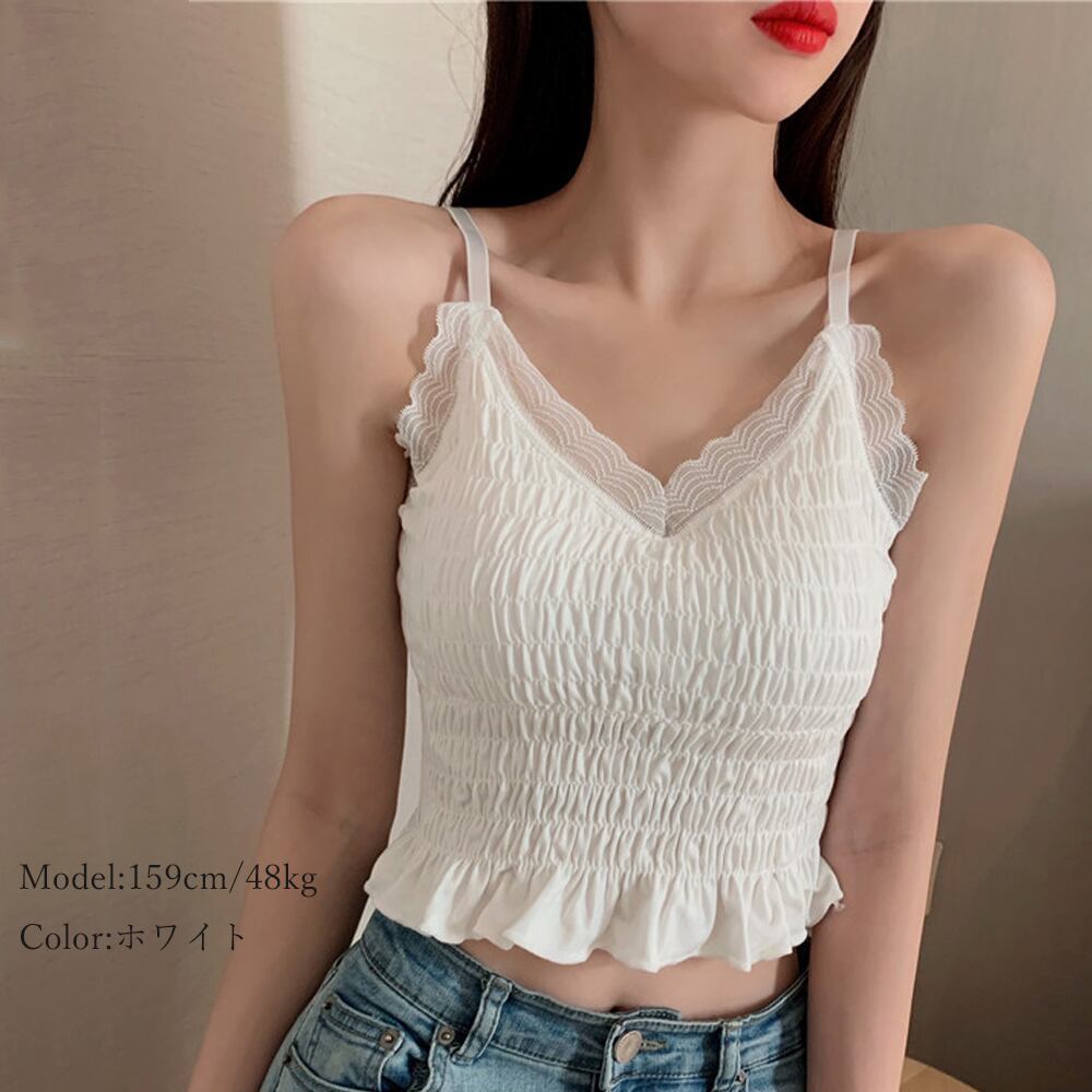 キャミソール ギャザー インナー ノンワイヤー トップス へそ出し 肌着 春夏 ショート丈トップス 重ね着 背中見せ Vネック セクシー