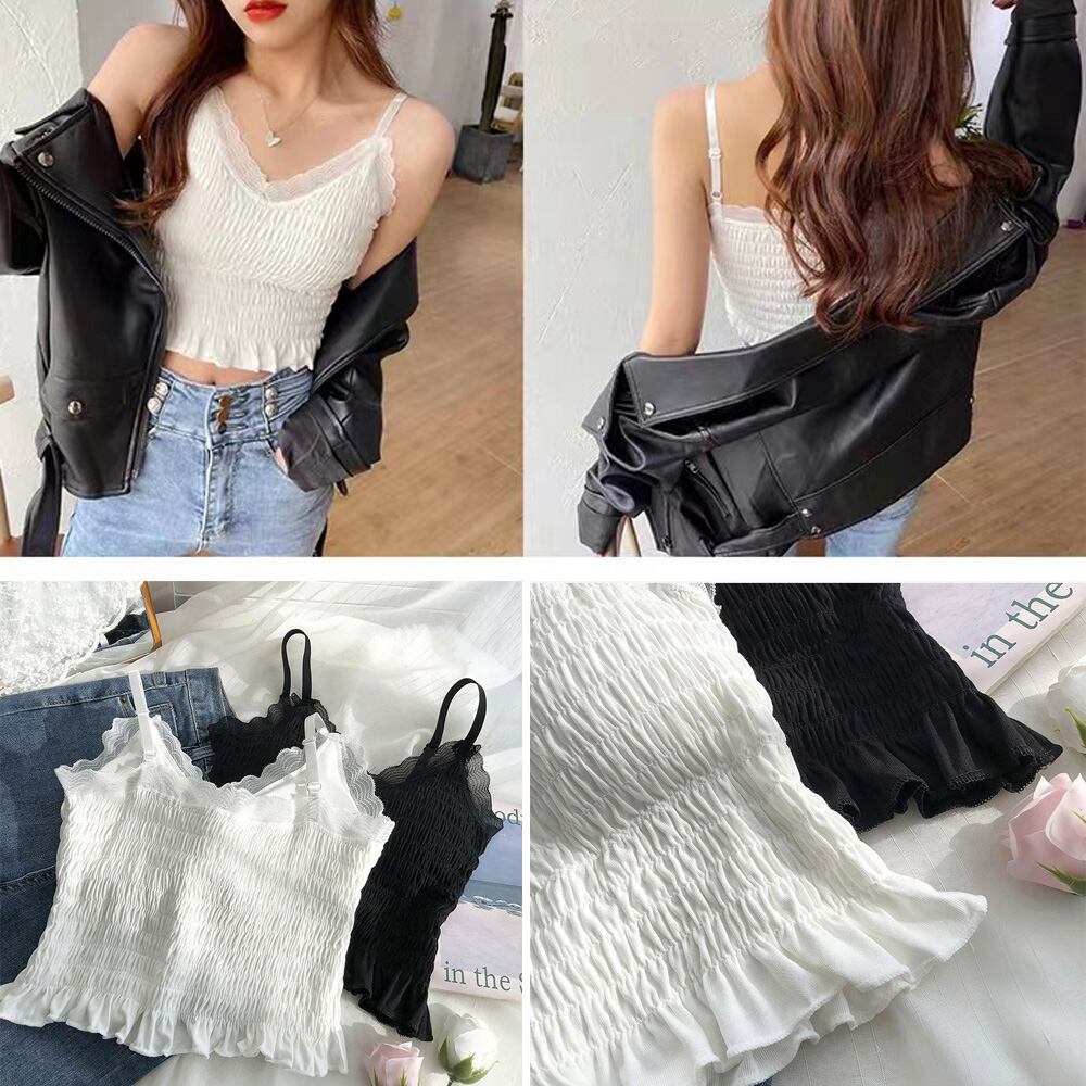 レース付きでオシャレ感をアップ、インナーとしてもトップスとしても着られる
