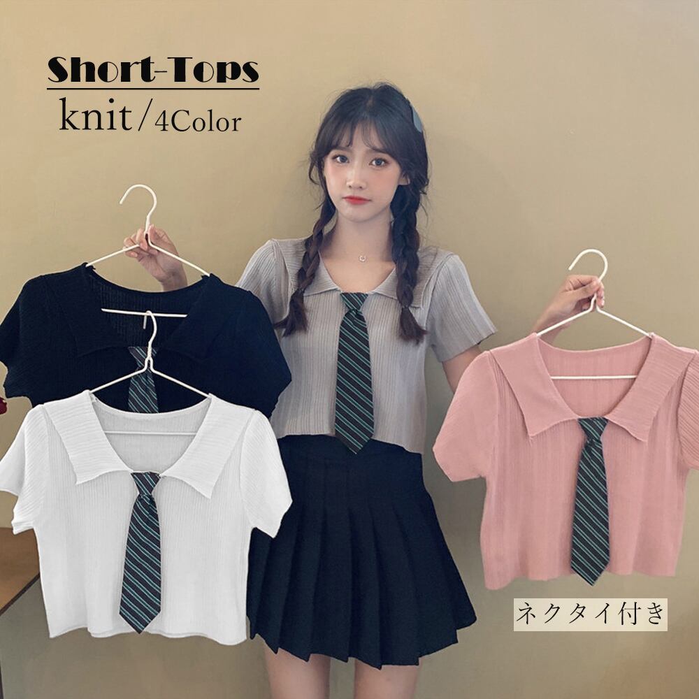 ニットトップス ネクタイ付き セクシー サマーニット おしゃれ カットソー コスプレ