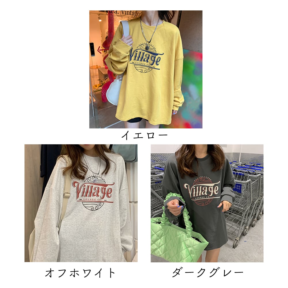 トップス ロング丈 トレーナー オーバーサイズ ゆったり 体型カバー オルチャン カジュアル おしゃれ 英字ロゴ