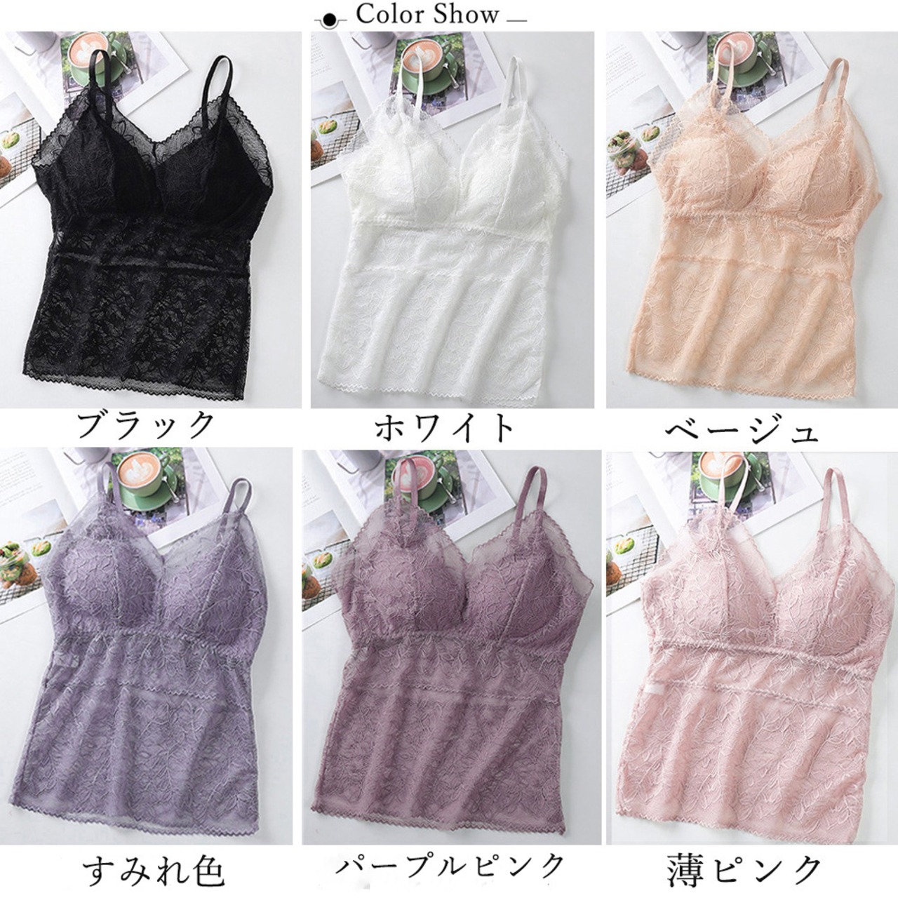 【日本倉庫からの発送】 キャミソール 総レース カップ付き #[77XF-011_9800]【送料込み】【250712】