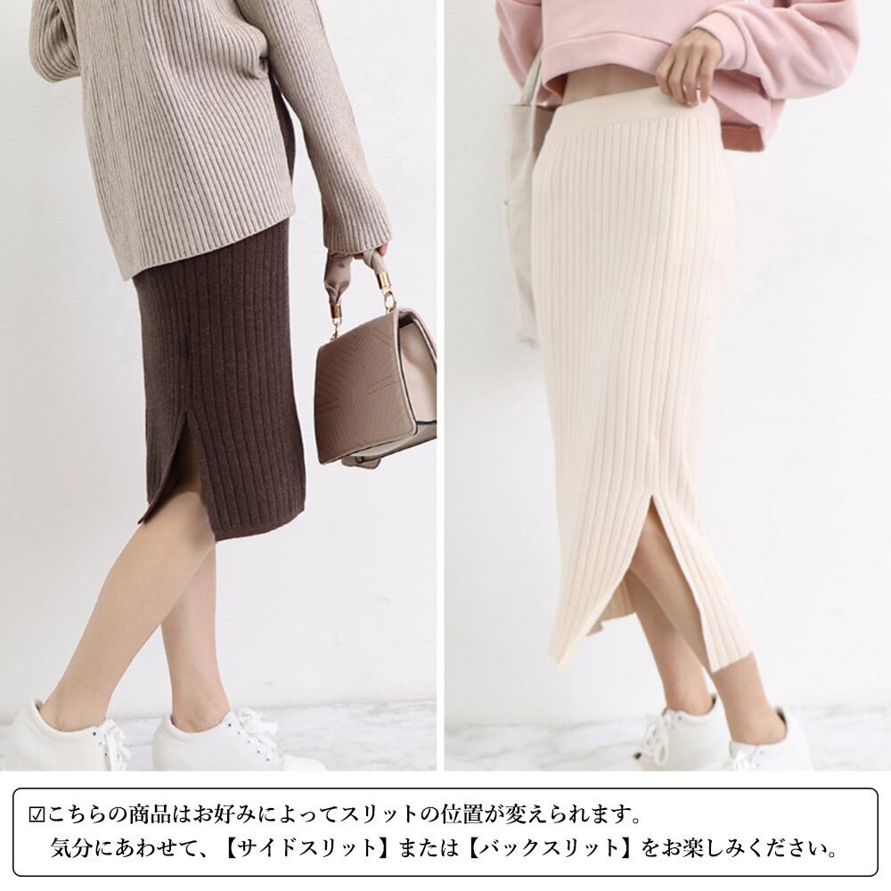 リブニット タイトスカート バックスリット 秋冬スカート ハイウエスト ペンシルスカート きれいめ オフィス 膝丈