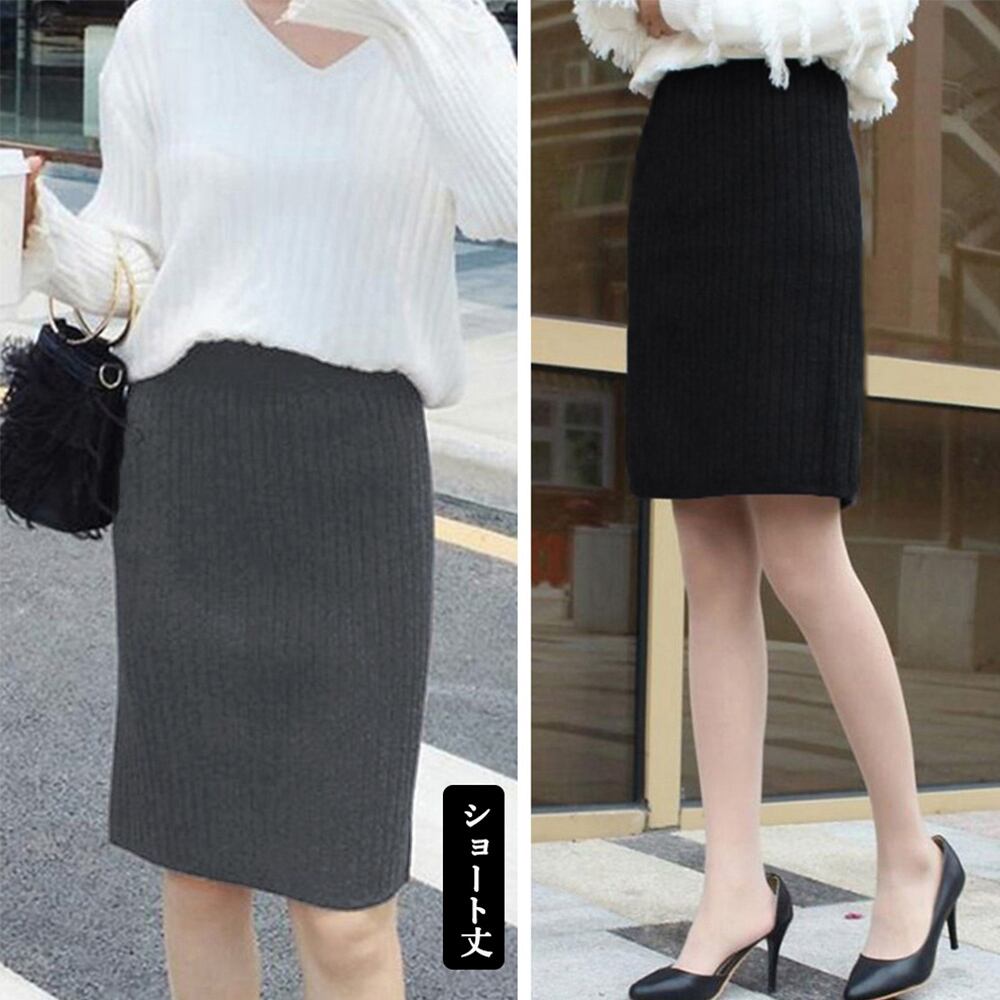 無地ニットスカート ストレッチスカート 韓国ファッション