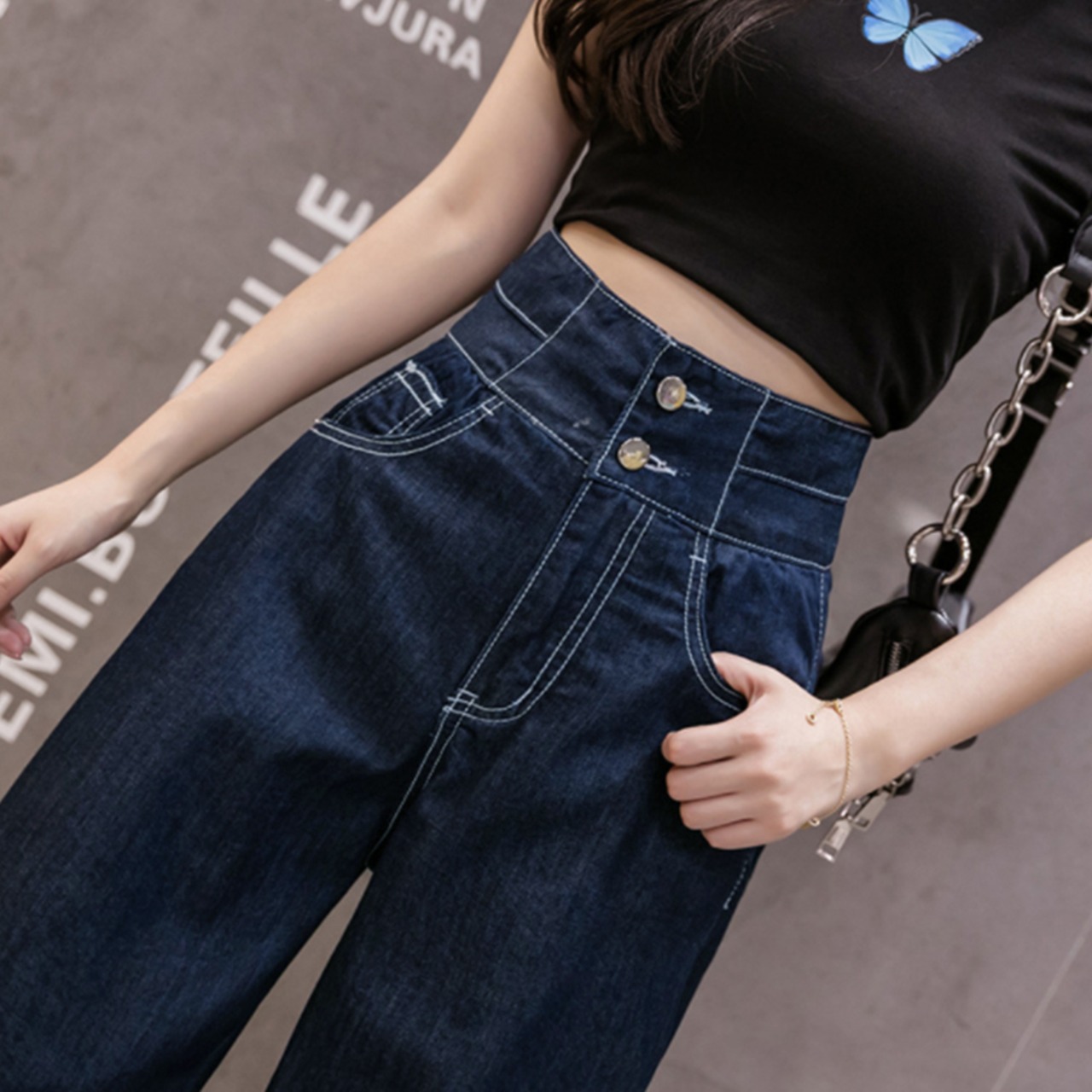 スタイルはよく見えるハイウエストデニムワイドパンツ