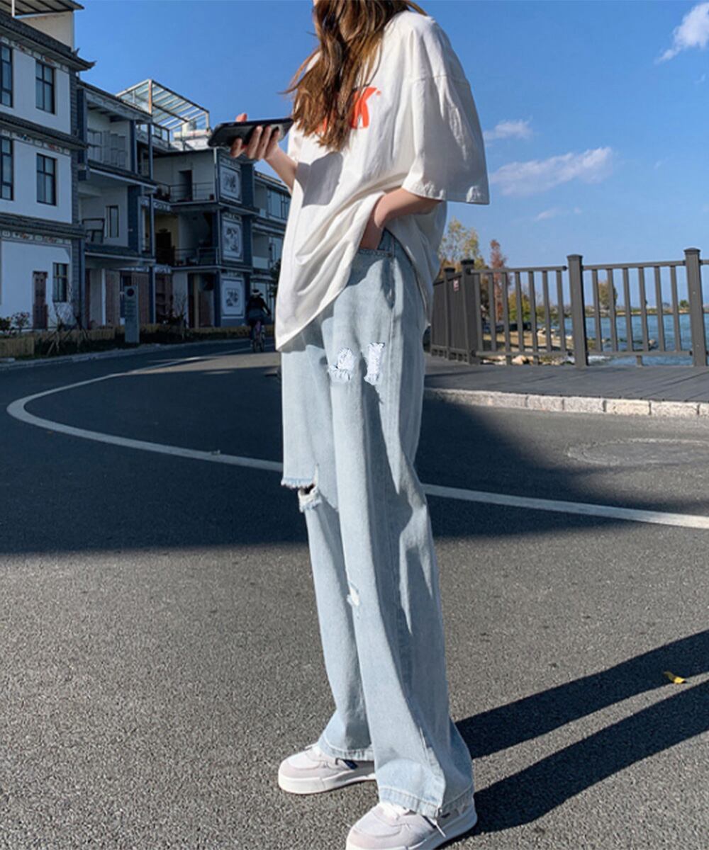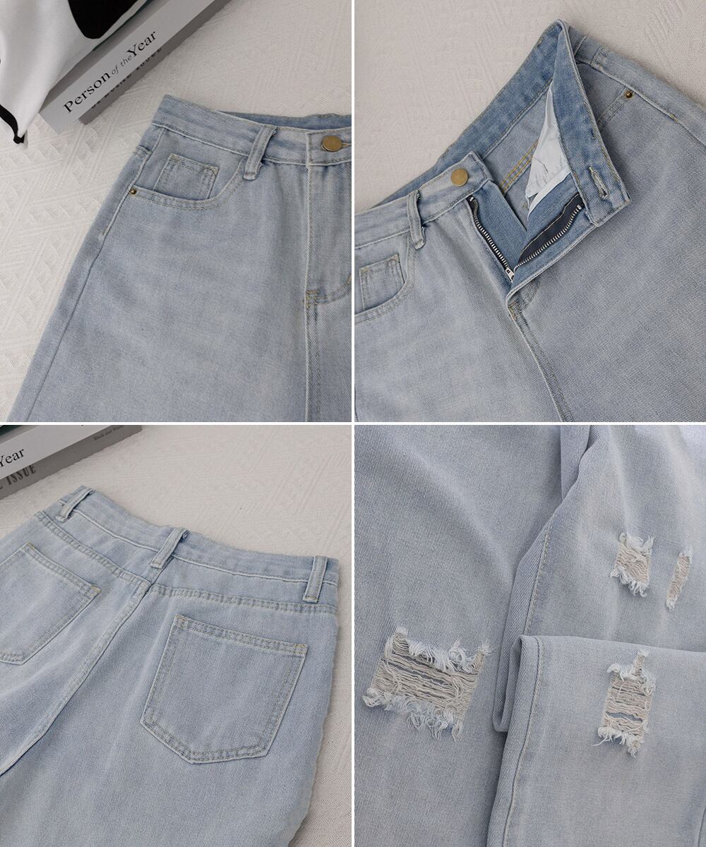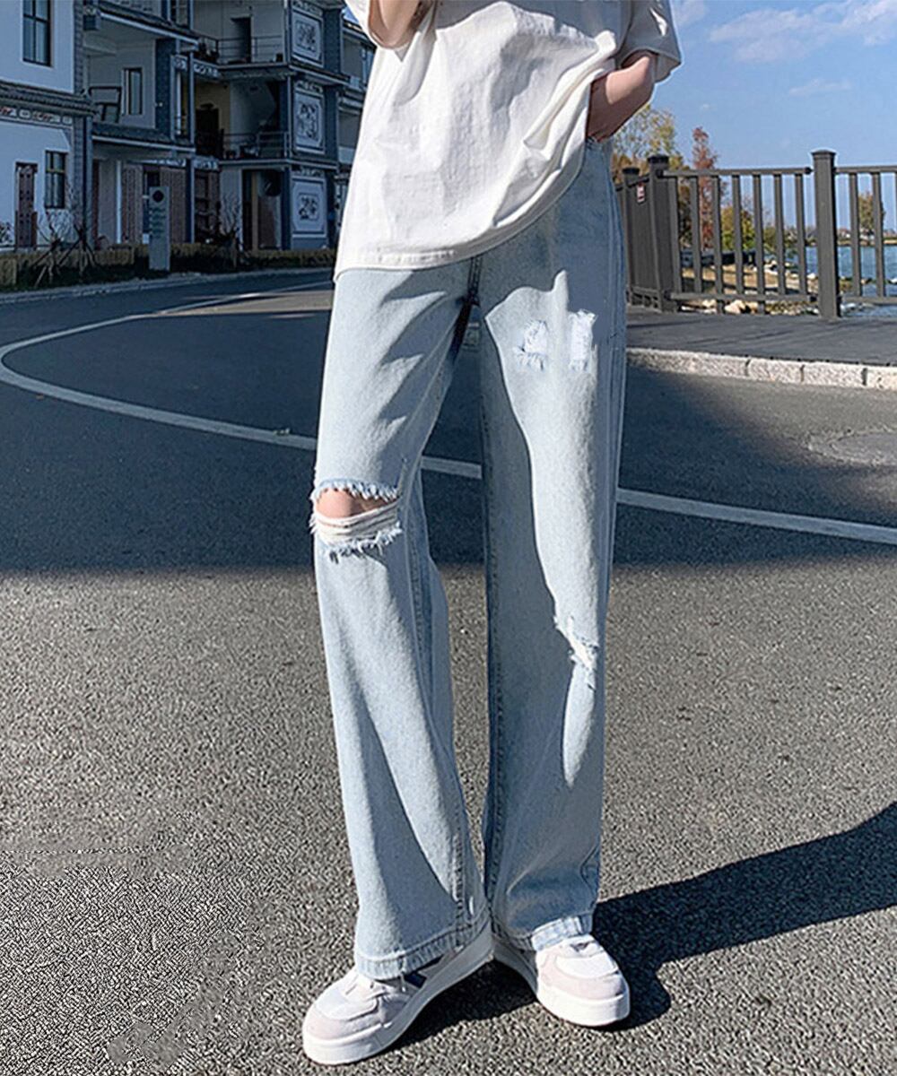 【日本倉庫からの発送】 ワイド デニムパンツ ダメージ加工脚長 #[80PINC-002_29300]【送料込み】【250803】