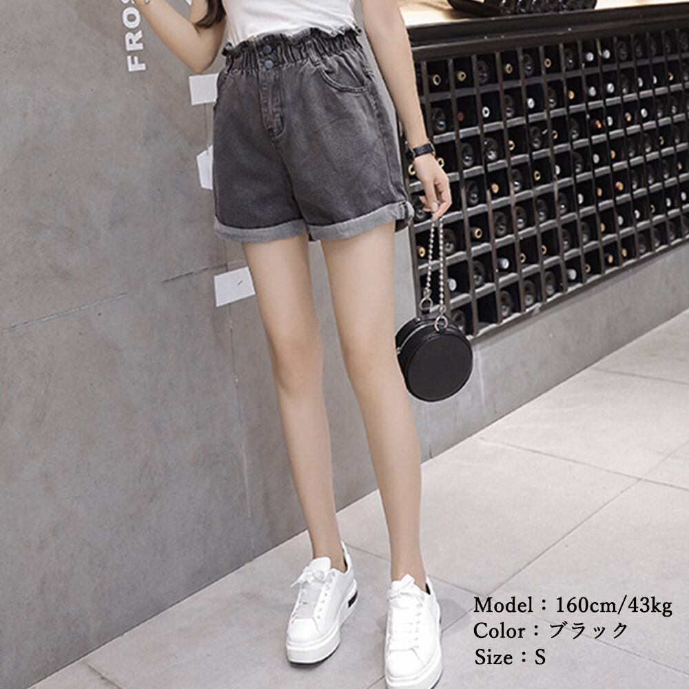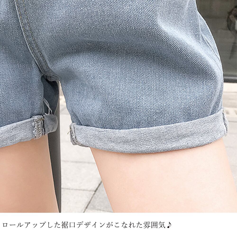 【日本倉庫からの発送】 デニムパンツ レディース ハイウエスト ショーパン ロールアップ #[BONS-002_25900]【送料込み】【250722】