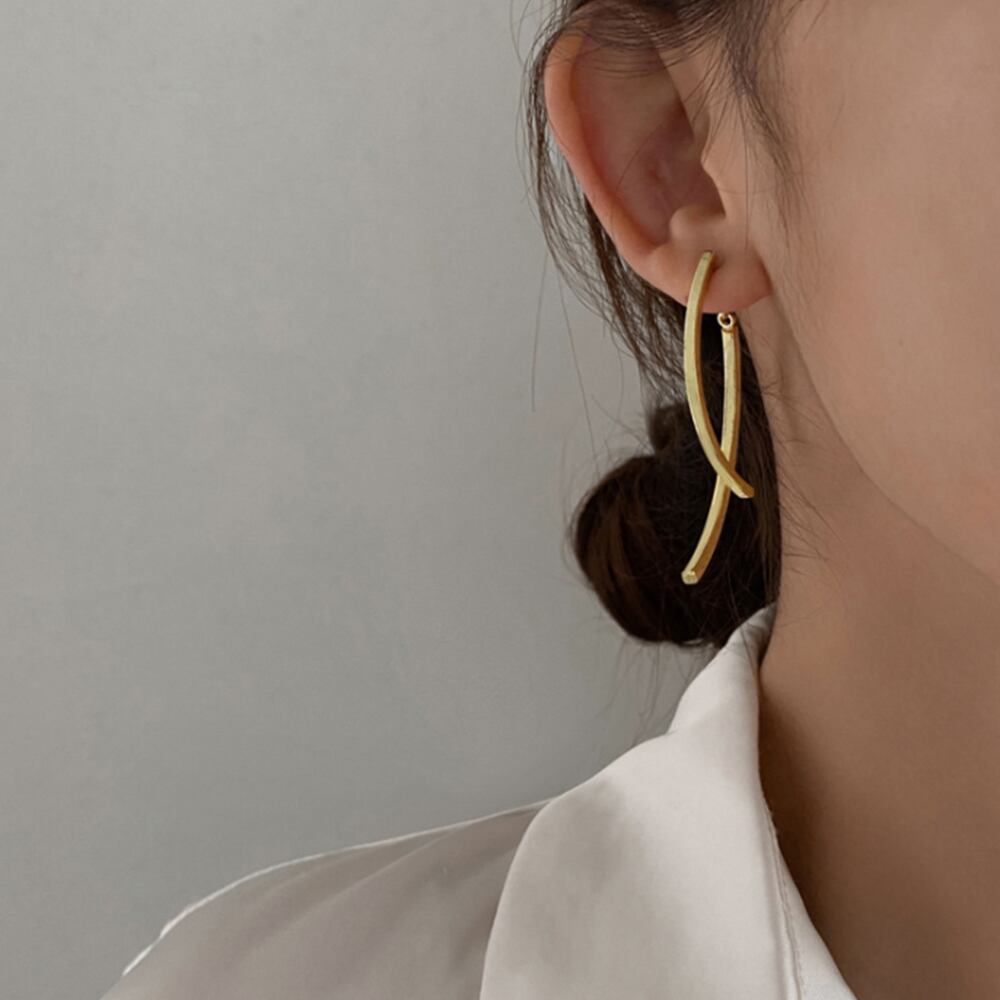 【日本倉庫からの発送】 クロスライン ピアス レディース 揺れる おしゃれ アクセサリー ゴールド #[6JFENG-001_5400]【送料込み】【251102】