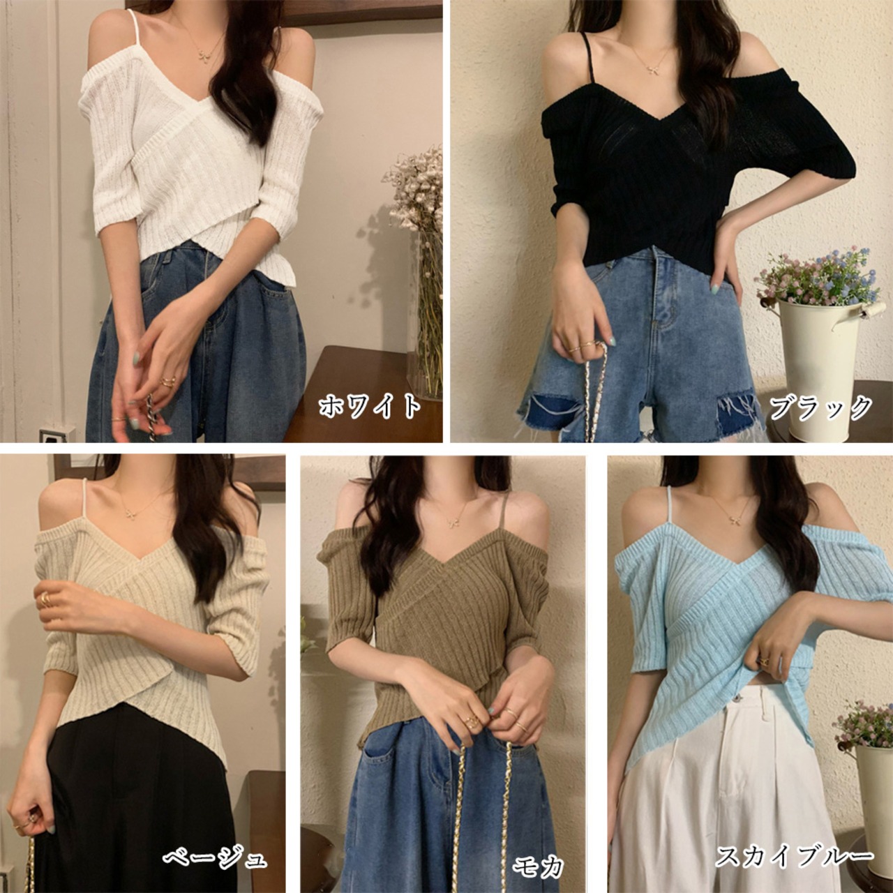 【日本倉庫からの発送】 サマーニットオフショルダーニットトップス #[85YN-900495_16200]【送料込み】【250712】
