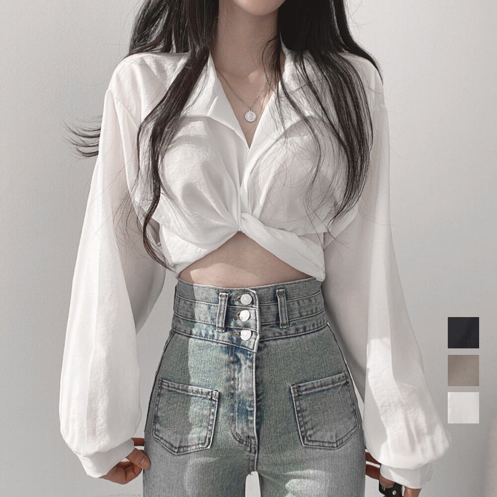 【日本倉庫からの発送】 シャツブラウス 長袖 ショート丈トップス #[77YUXIN-001_15600]【送料込み】【250915】